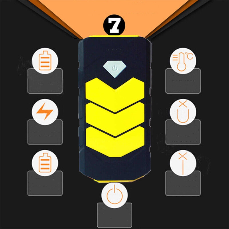 💡 Светодиодный фонарик: светодиодный фонарик имеет три режима, включая вспышку, стробоскоп и свет. Это может помочь в любой ситуации, особенно во время приключений, на открытом воздухе, в комнатах, в чрезвычайных ситуациях, путешествиях и т. Д. Этот портативный стартер всегда будет с вами, поэтому вам никогда не придется ждать на дороге или просить о помощи из -за разряженной батареи. Покрытие ABS сильнее обычного пластика, а текстурированная поверхность и эргономическая линия делают его кратким и чрезвычайно анти -славитным.