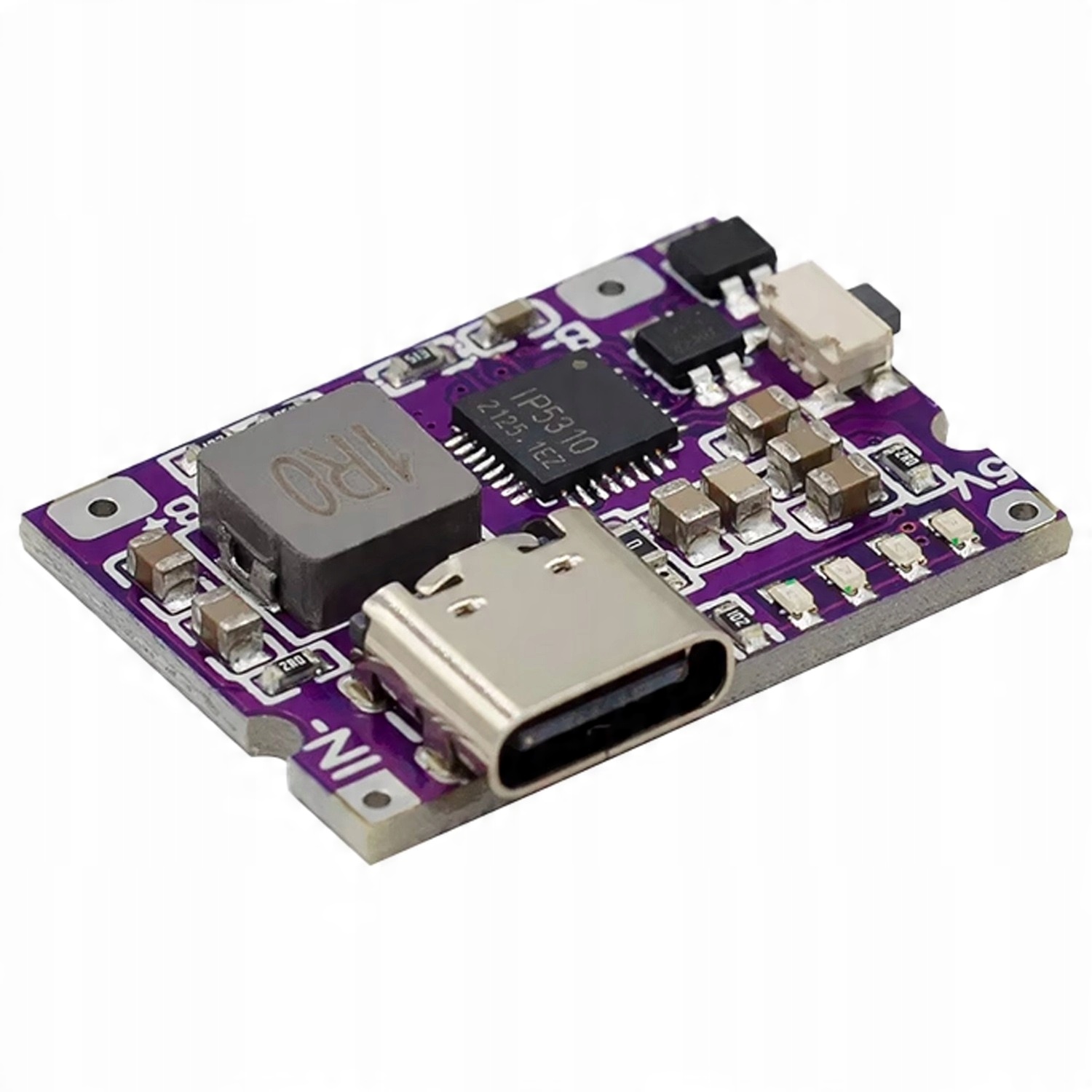 Модуль благодаря, которому можно построить свой собственный банк с высокой мощностью с высокой текущей мощностью 3А. У него есть порт USB-C, который служит входом и выходом. Это позволяет обрабатывать любое количество ячеек, соединенных параллельно, то есть для увеличения емкости упаковки. Светодиоды на пластине показывают текущее состояние заряда батареи. Мы можем загрузить телефон PowerBank одновременно в дополнение к ячеек через порт USB-C. Кнопка позволяет вам включать и выключать устройство в любое время. Небольшие размеры являются дополнительным преимуществом. Модуль автоматически обнаруживает подключение устройства зарядки. Имеет супер -точную защиту, выходы на ночь и защиту от разряда и перезагрузку подключенных ячеек, благодаря которой вам не нужен дополнительный модуль BMS.