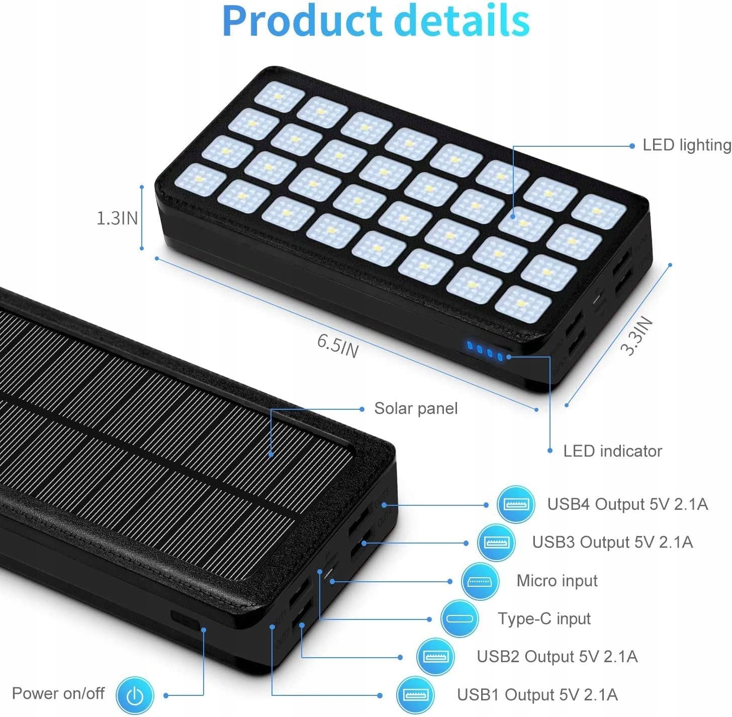 POWERBANK SOLARNY USB-C 32 LED 30000 mAh 4X USB