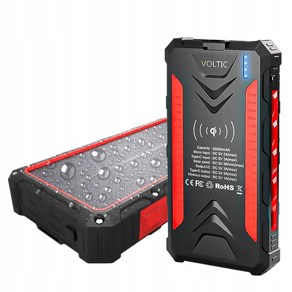 POWERBANK СОНЯЧНИЙ VOLTIC 36000MAH 20W 4X USB-C PD QC3 ІНДУКЦІЙНА ЗАРЯДКА