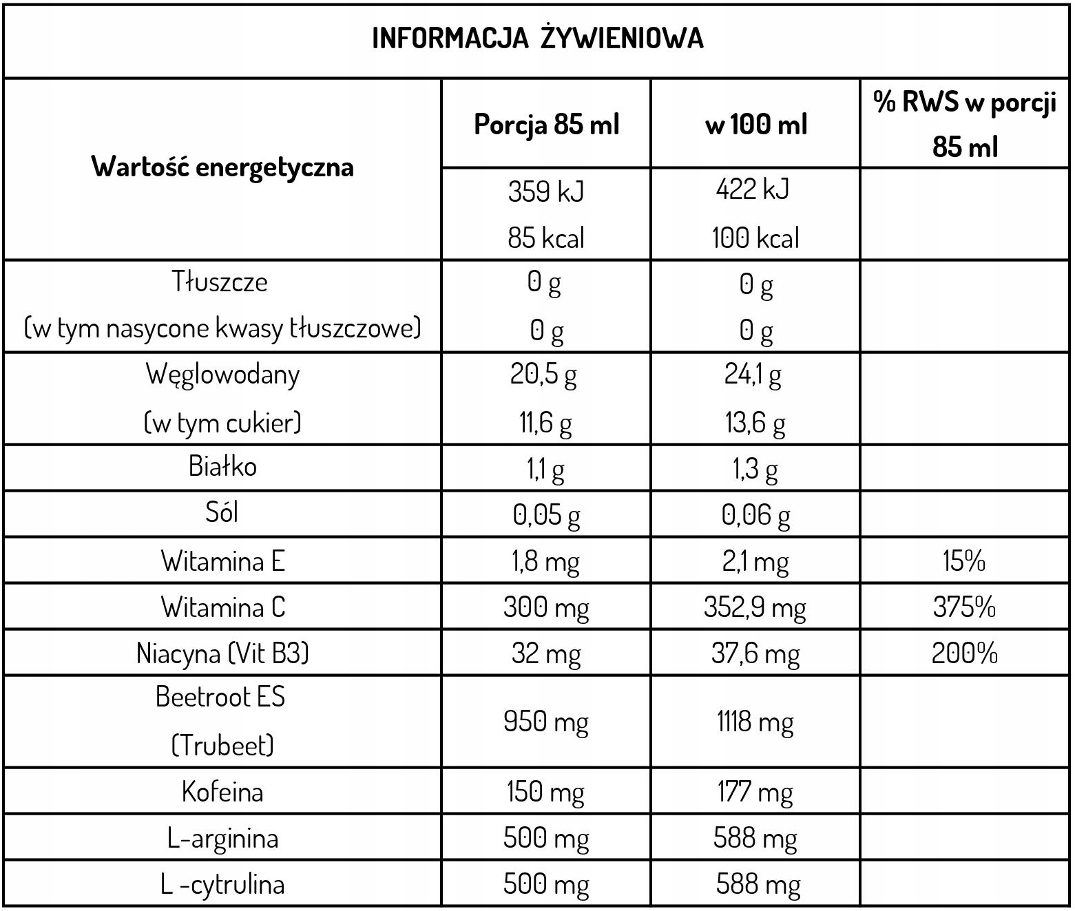 Powerflux Ethicsport Mega Pre -Pre -Oworkout Shot Caffeine свекла витамин B3 85 мл