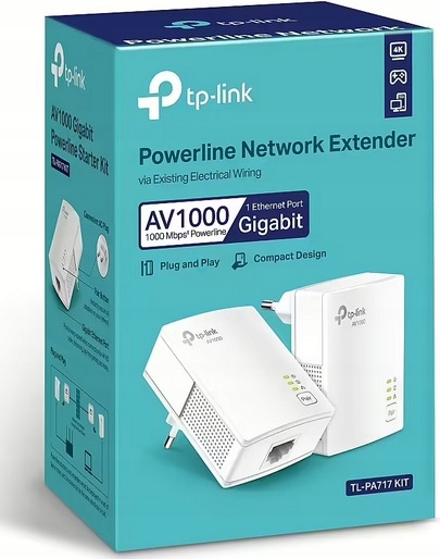 TP-Link PowerLine TL-PA717 Набор адаптеров комплекта (1000 MBIT/S, GIGABIT PORT, PLUCK & PLAY, совместимый со всеми адаптерами PowerLine HomePlug AV/AV2, идеально подходит для потоковой среды