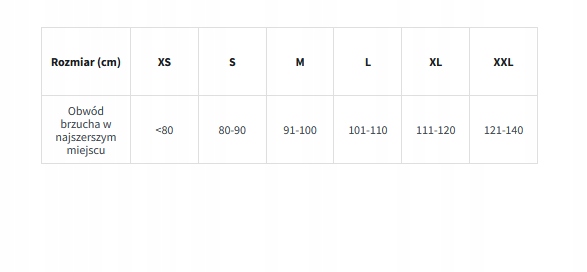 1. Чтобы правильно отрегулировать размер, измерьте окружность живота (в самом широком месте), а затем выберите размер из таблицы.