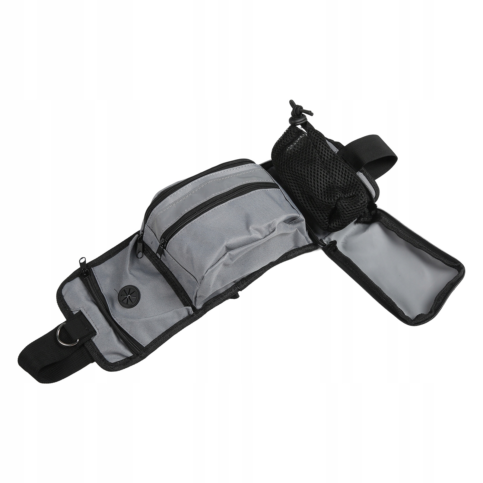 2. КОНСТРУКЦИЯ ДЕРЖАТЕЛЯ БУТЫЛКИ: Откройте карман на молнии на левой стороне поясной сумки для дрессировки собак, чтобы освободить держатель для бутылок, который может вмещать бутылки объемом до 750 мл и 25 унций (не входит в комплект). Если он не нужен, просто закройте молнию, чтобы скрыть его.