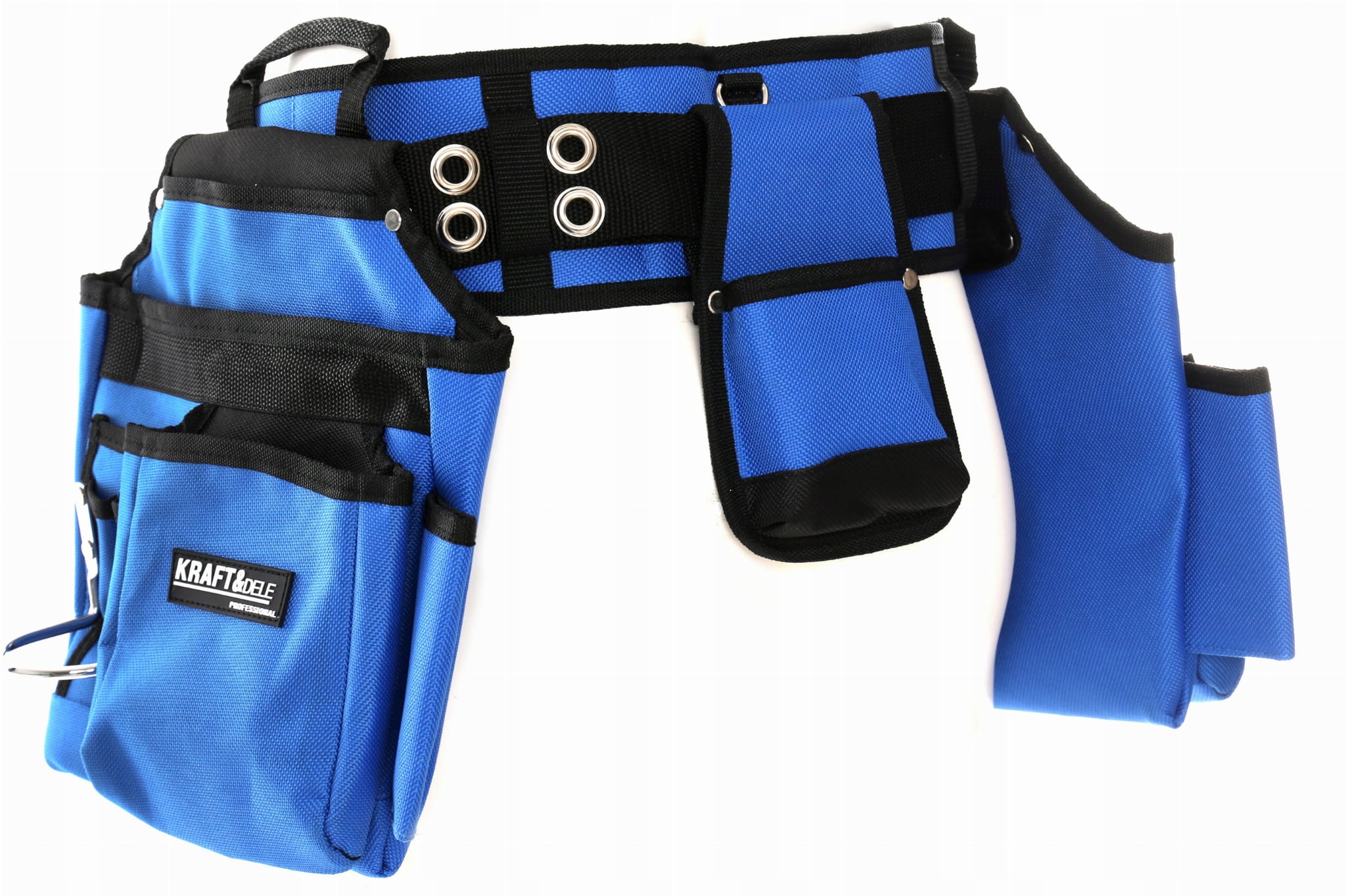 <ул>Ремень монтажный Kraft&Dele KD2053 представляет собой пояс для инструментов с 18 карманами, держателем молотка и 3 застежками для дополнительных карманов.