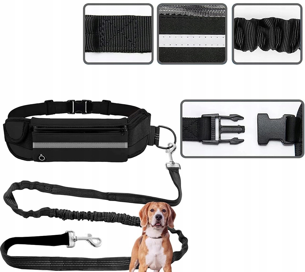 ПОЯСНА СУМКА ТРЕКІНГОВИЙ ПОВІДЦЬ ДЛЯ БІГУ З СОБАКОЮ, ЕЛАСТИЧНИЙ АМОРТИЗАТОР