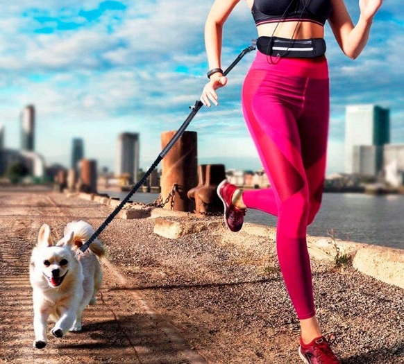 Поясной ремень + гибкий регулируемый поводок для бега с собакой до 50 кг