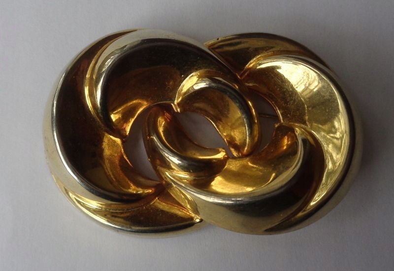 Интересная, декоративная, аккуратно выполненная брошь 1960-х годов. Экспонат выполнен из позолоченного металла. Брошь имеет красивую форму и форму. Брошь состоит из интересных выпуклостей и неправильных завитков. Экспонат имеет надежную застежку. Задняя часть броши имеет гладкую поверхность. Подходит для любого случая. Всем рекомендую.