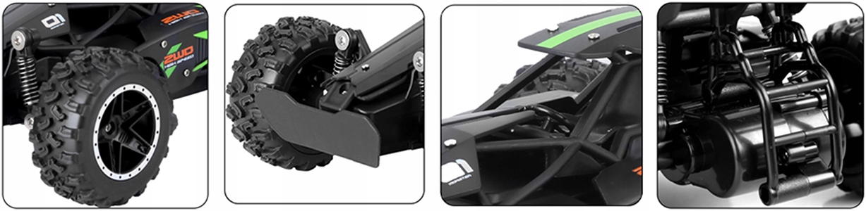 ⛰️Машина с дистанционным управлением имеет четыре цельнолитые шины с композитным протектором с отличным сцеплением, задний привод, переднюю подвеску и подвеску с амортизаторами сзади, что облегчает преодоление неровных дорог.