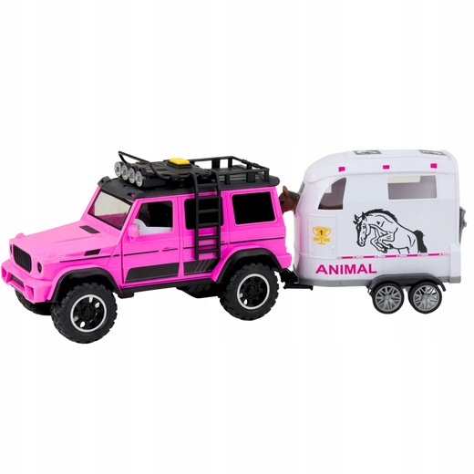 - Набор «ВНЕДОРОЖНИК С ПРИЦЕПОМ ДЛЯ ЛОШАДИ» – идеальная игрушка для маленьких любителей реалистичного транспорта и ферм. Выполненный из качественного пластика, этот бело-розовый внедорожник с прицепом восхищает каждой деталью. Благодаря световым и звуковым эффектам и открывающимся дверям ваш малыш сможет разыгрывать различные сценки. Самая большая достопримечательность — съемный трейлер с фигуркой лошади, позволяющий бесконечно веселиться. Набор развивает у ребенка воображение, творческие способности и навыки ручного труда. Идеальный подарок для любителей животных и внедорожников. Размеры: машинка 23 х 12,5 х 10,5 см, комплект 40 х 13 х 10,5 см. В комплекте: внедорожник, прицеп для перевозки лошадей, фигурка лошади, тестовые батарейки AG13.