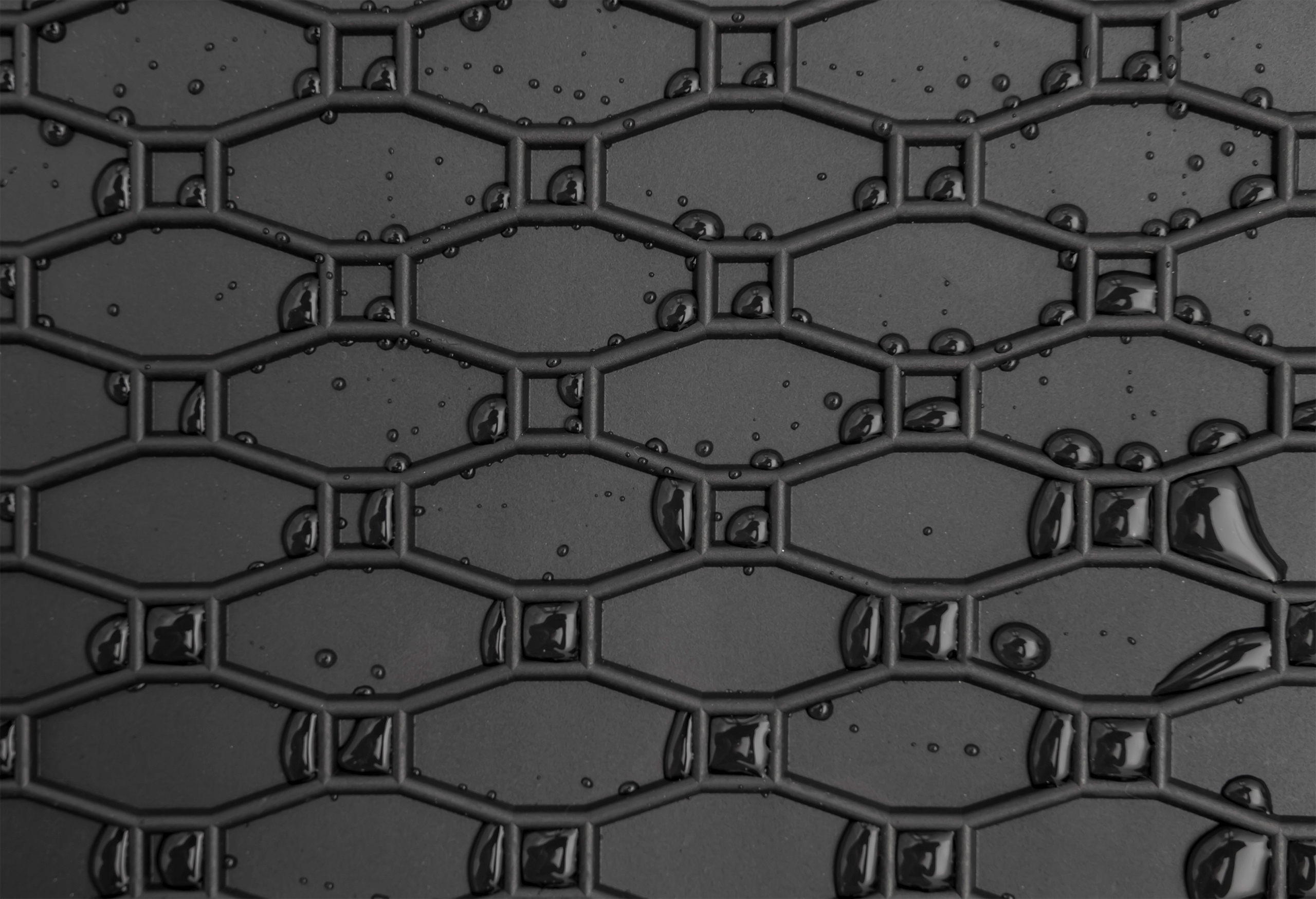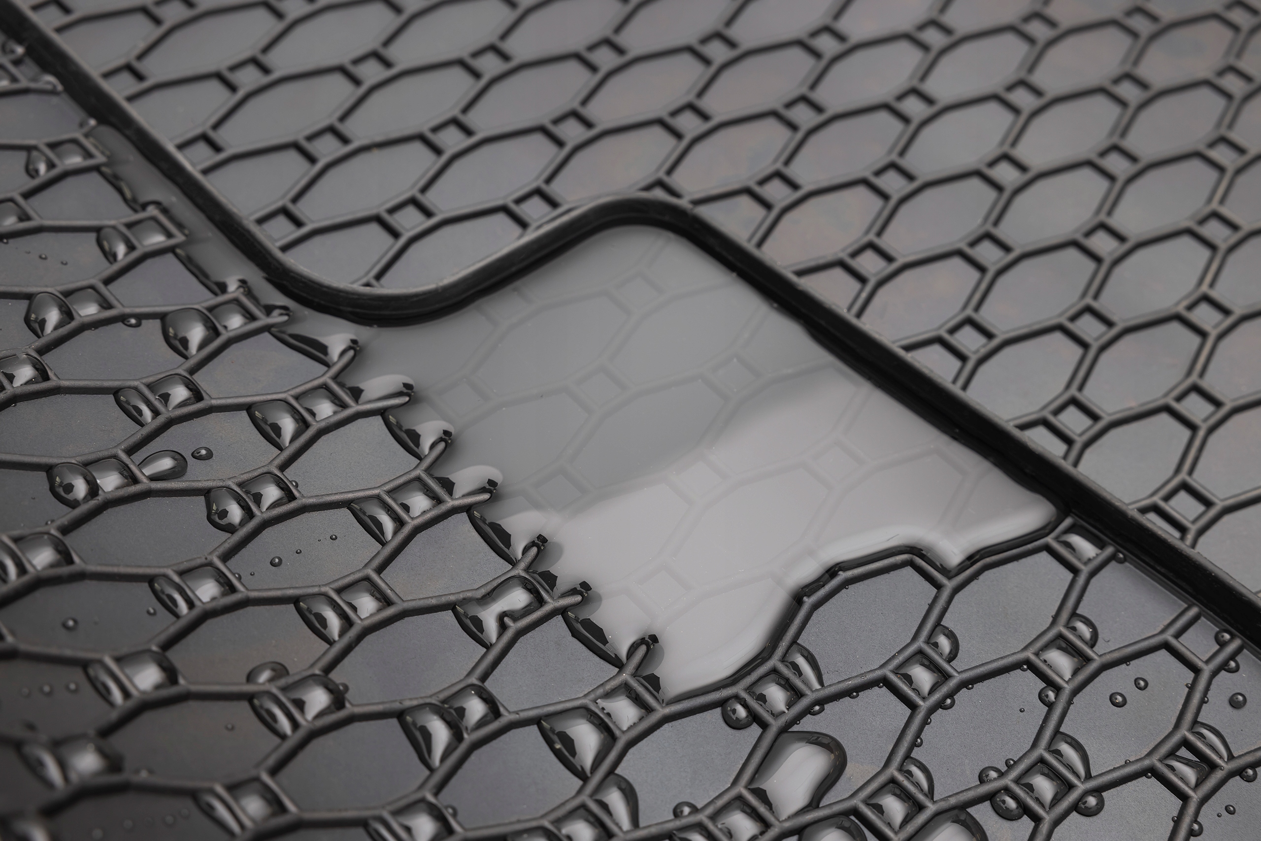 Благодаря особой структурепо всей поверхности ковриков и приподнятой кромке оригинальная обивка автомобиля защищена от затопления и грязи. Структураотлично останавливает распространение грязи на остальной поверхности ковра.