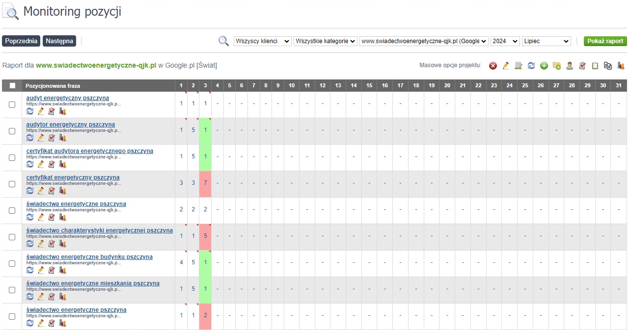 Ниже приведен пример реального клиента, которого мы обслуживаем за 100 злотых нетто (вы получите доступ к той же панели, где сможете отслеживать эффекты позиционирования).