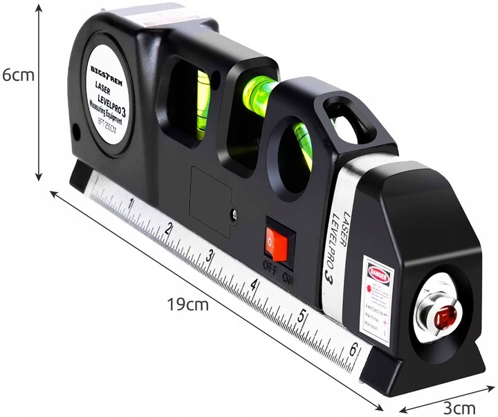 POZIOMICA LASEROWA LED Z MIARKĄ 250CM 3 LIBELKI