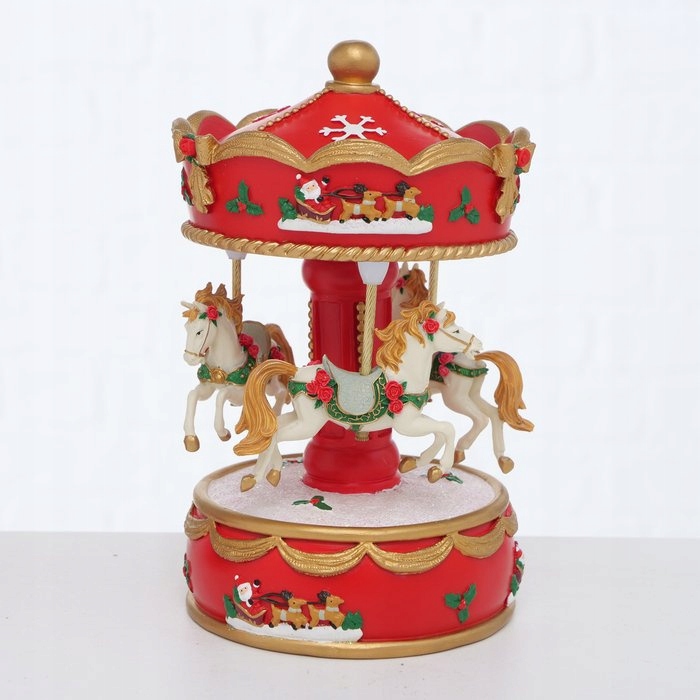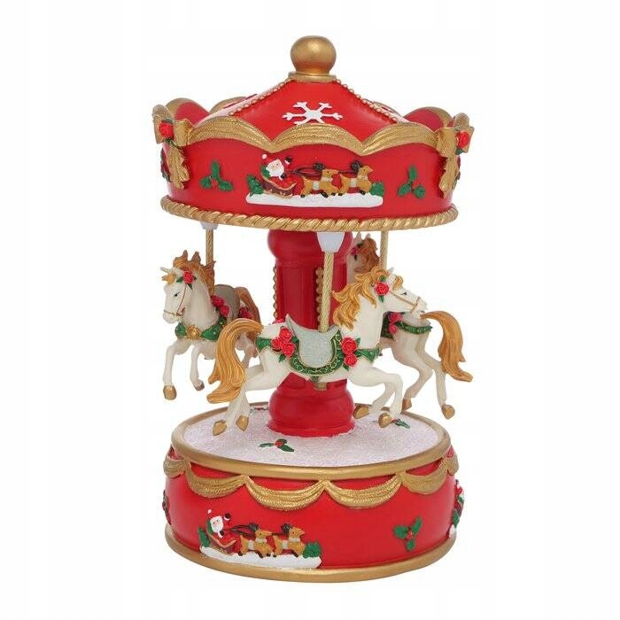 РОЖДЕСТВЕНСКАЯ МУЗЫКАЛЬНАЯ ШКАТУЛКА РОЖДЕСТВЕНСКОЕ УКРАШЕНИЕ СВЕТОДИОДНАЯ КАРУСЕЛЬ 17 СМ КРАСНАЯ