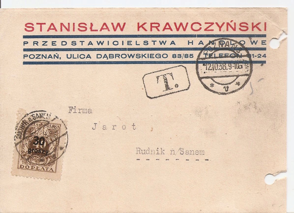 POZNAŃ -STANISŁAW KRAWCZYŃSKI-KARTA -1938 rok