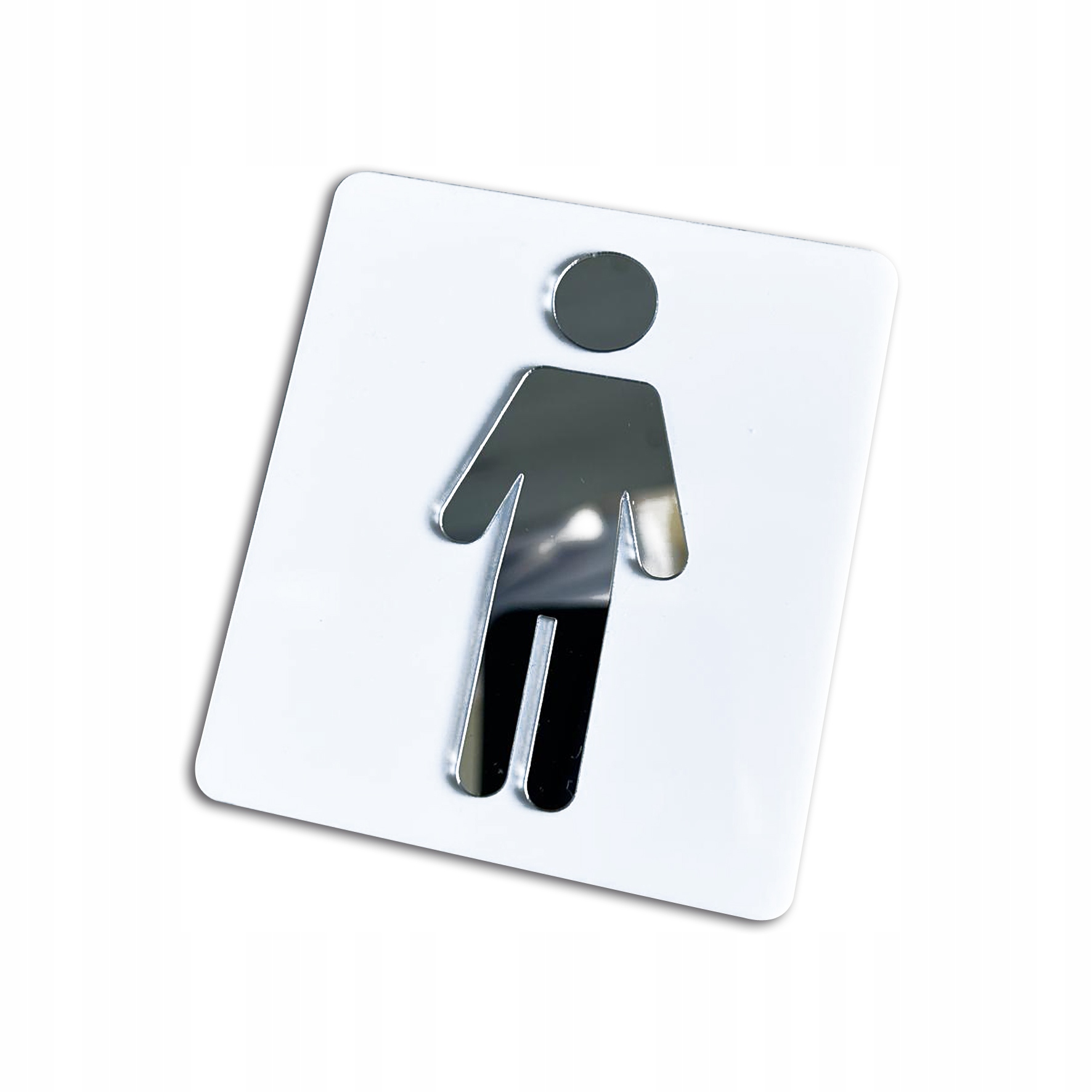Позначення на двері туалету ЧОЛОВІЧА інформаційна табличка БІЛА срібна піктограма