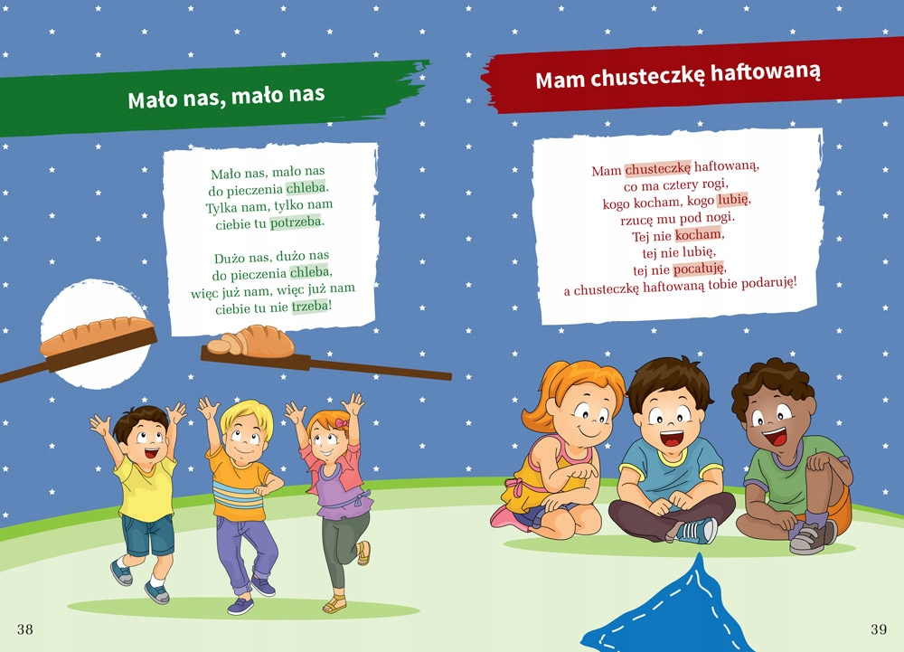 Мы представляем сборник стихов, песен и детских стишков, принадлежащих разным поколениям, которые сопровождают детство всех поляков – некоторых даже на протяжении нескольких десятков лет! Их знали наши родители, бабушки и дедушки, их слышали в наших домах и дворах в детстве, так что теперь пришло время передать их нашим детям.