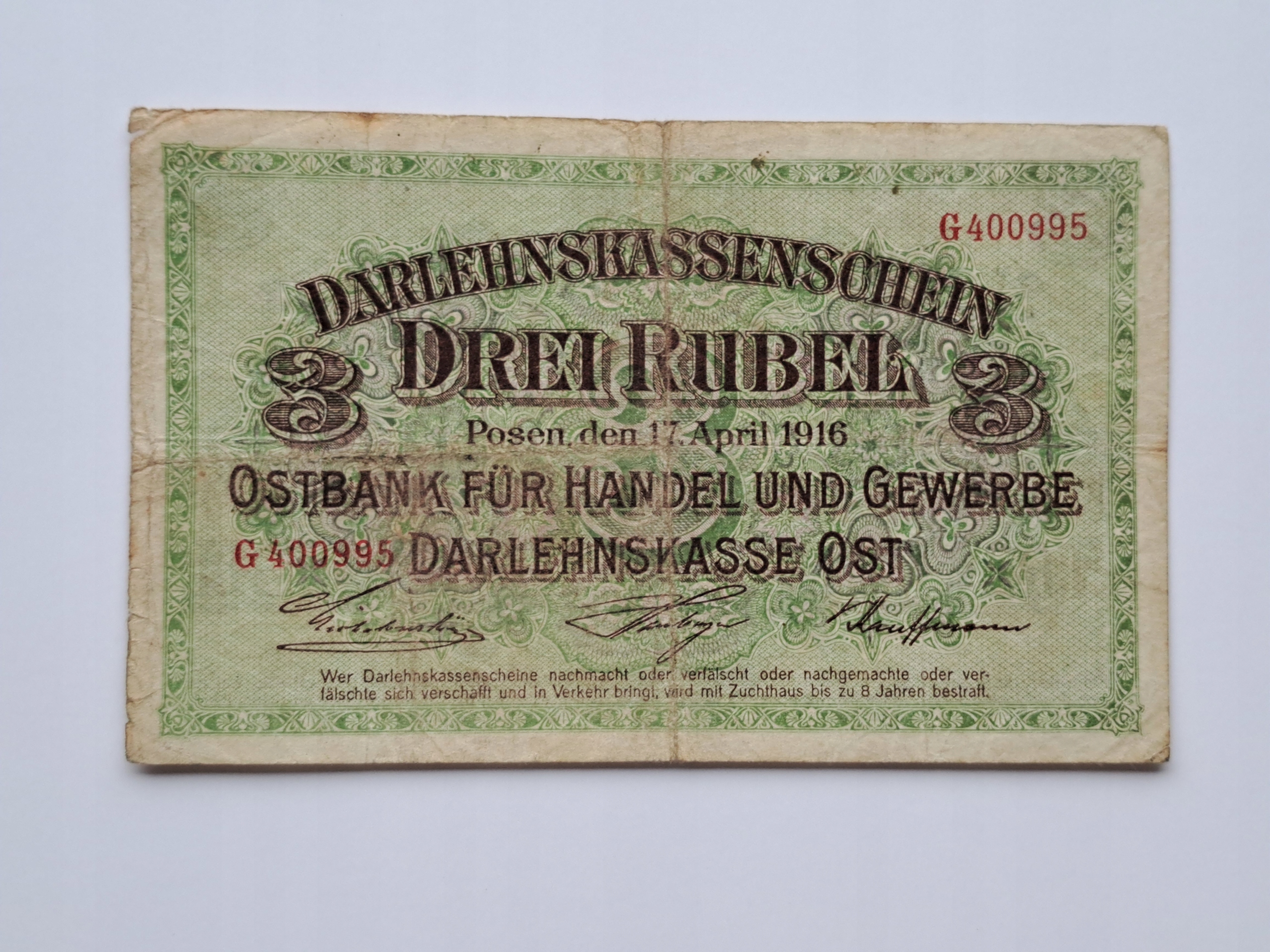 Познаньская 3 рубля 1916 года. Серия G 400995.