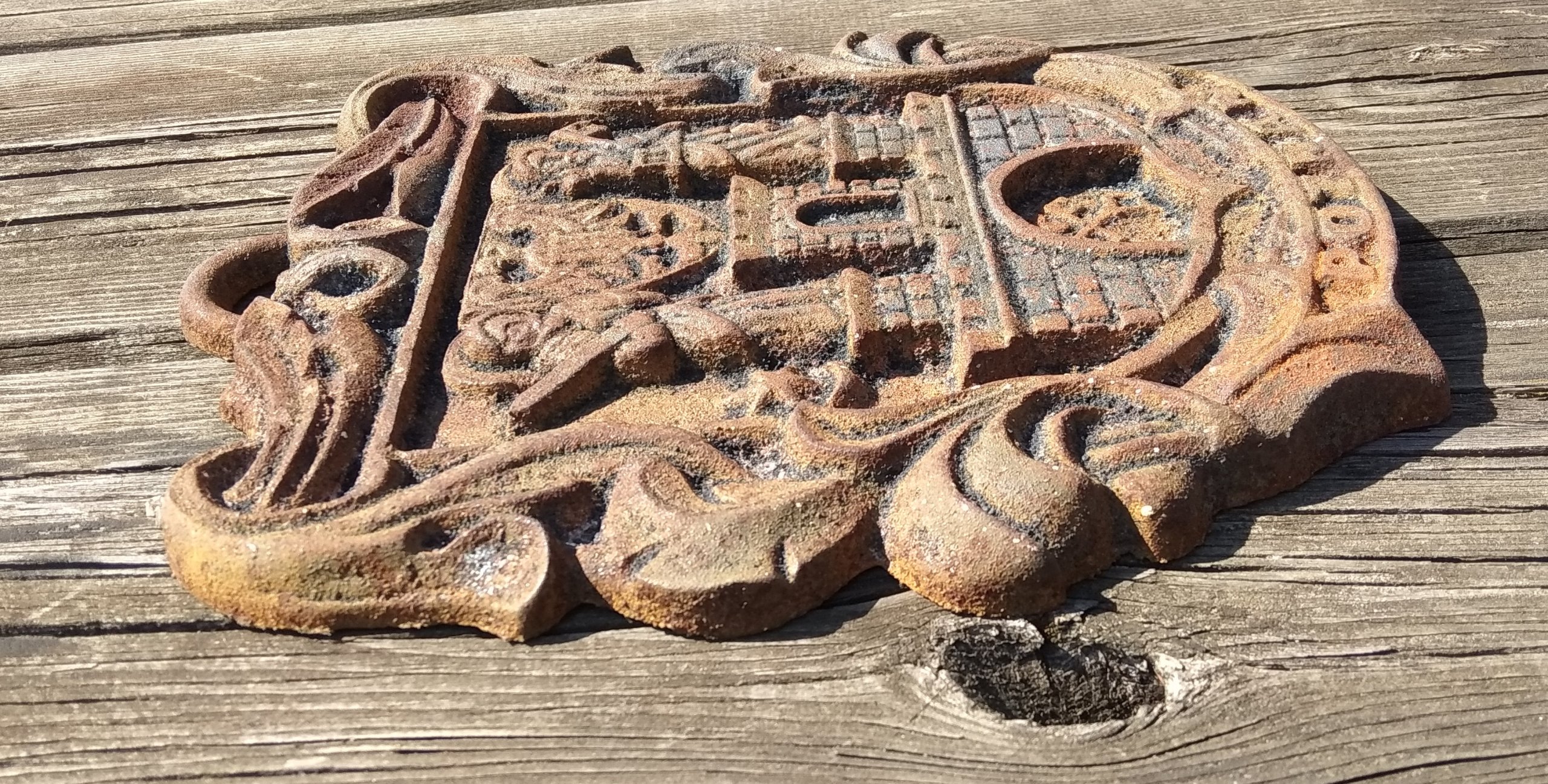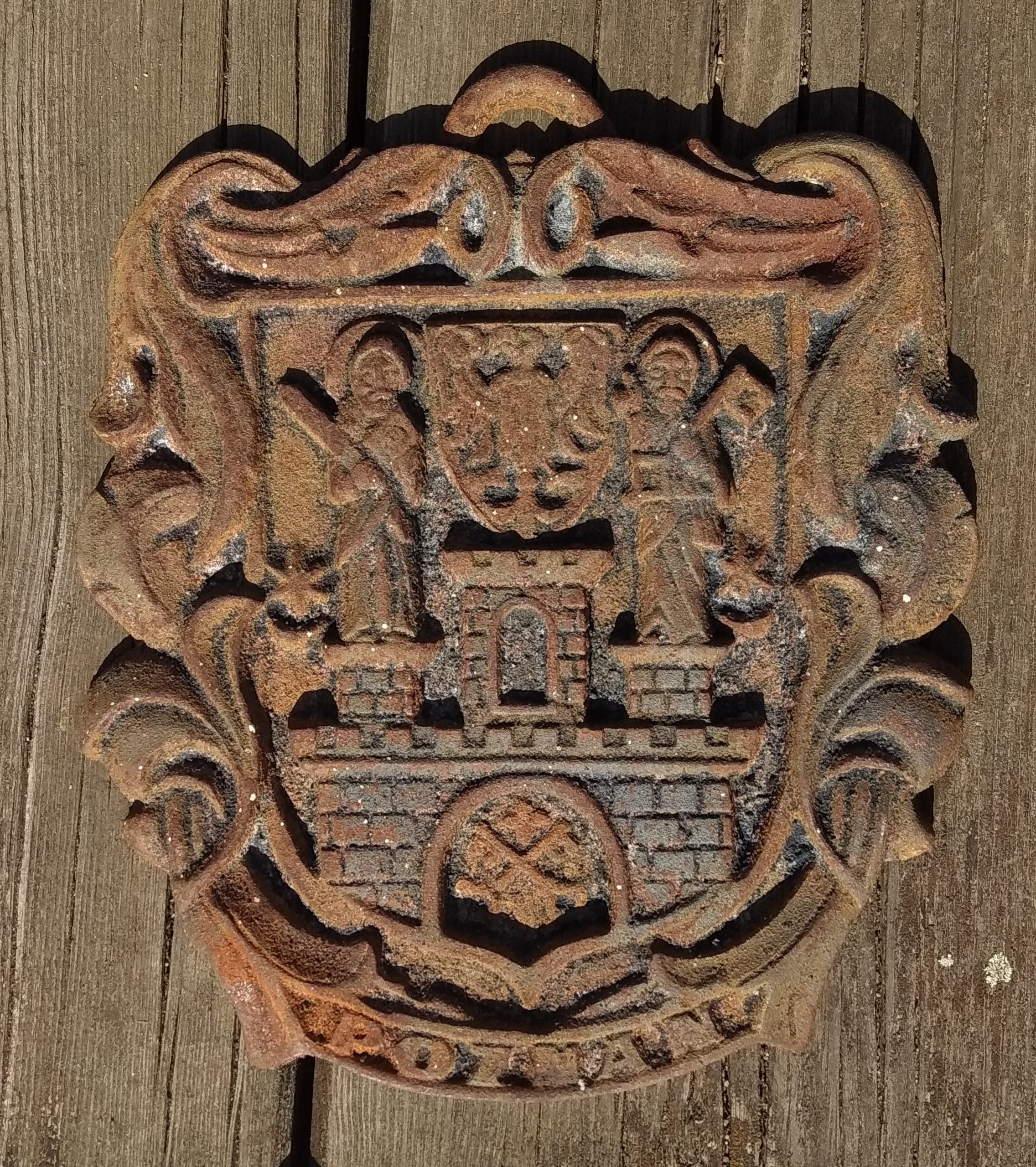 Герб Познани – литой (чугун?). Следы черной краски. Период, который трудно определить. 20 век? Может, между войнами? Интересный факт - герб с ушком, допускающим подвешивание.