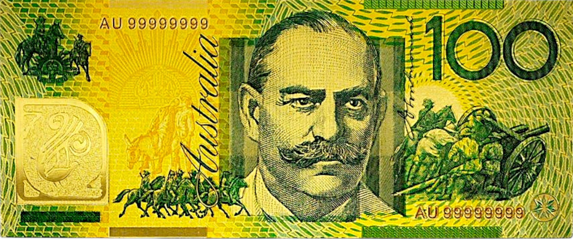 Изображен сэр Джон Монаш — выдающийся австралийский военачальник и инженер. Его образ символизирует прогресс, силу и национальную гордость. Проект обогащен мотивами, связанными с историей и техническим развитием Австралии.