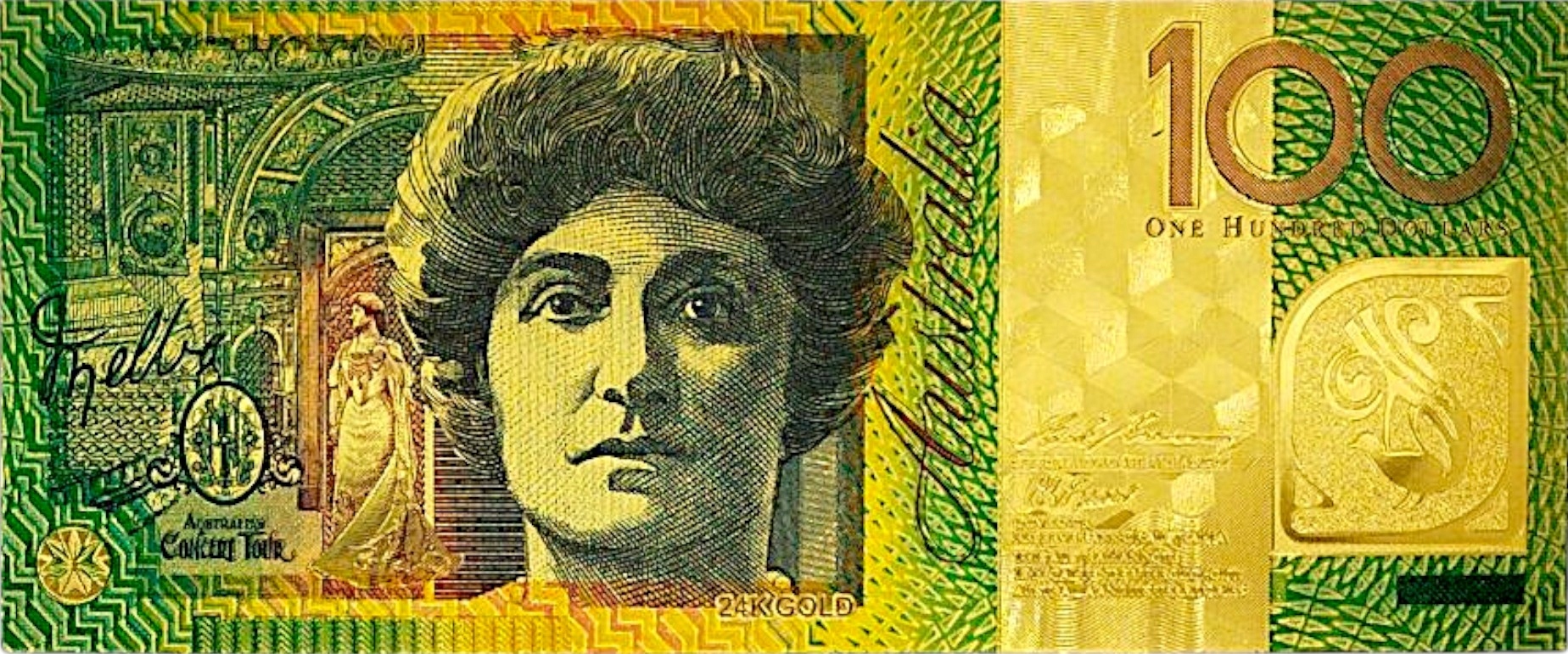 Коллекционная банкнота из ПВХ 100 австралийских долларов, позолоченная