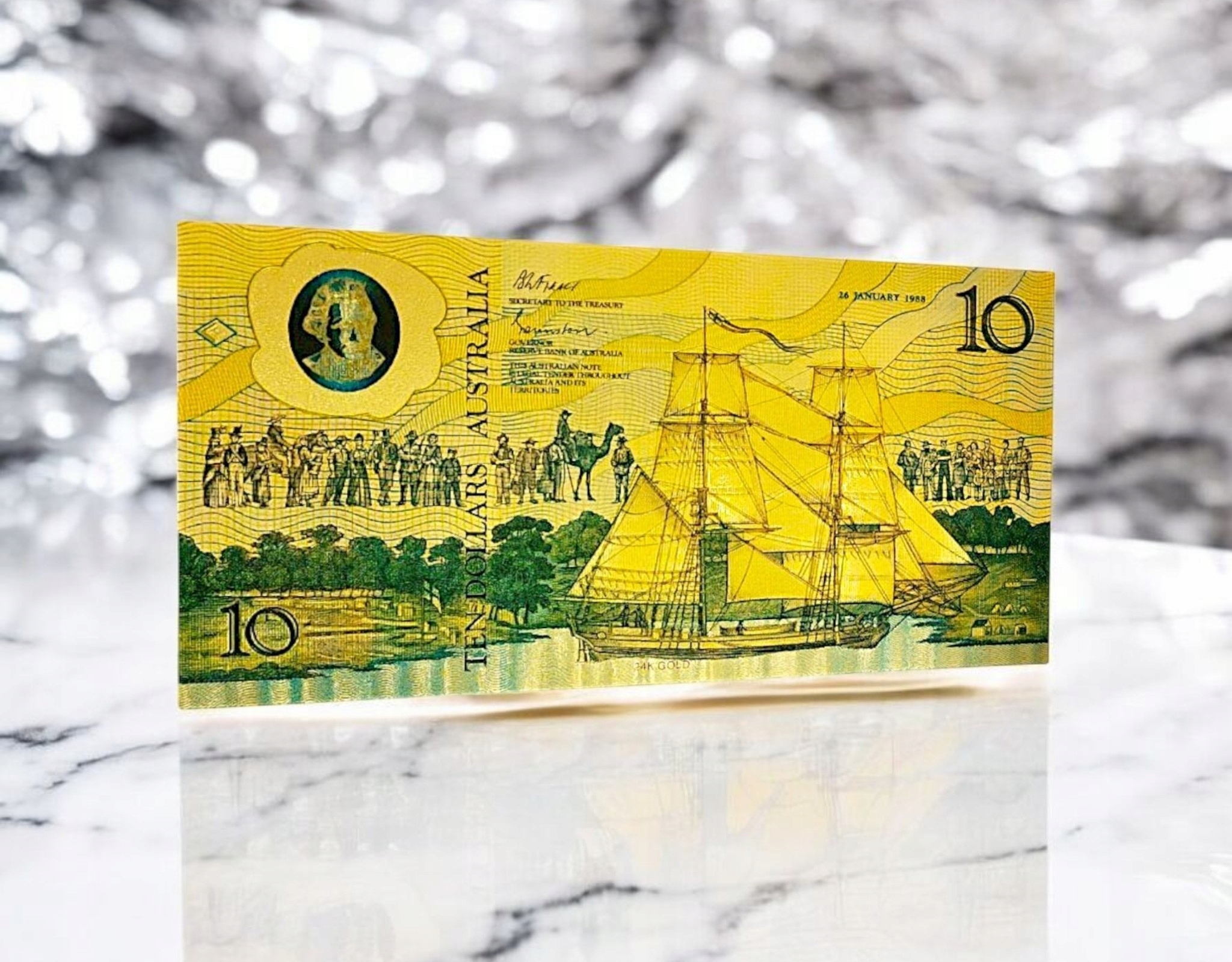 Коллекционная позолоченная банкнота из ПВХ старой версии стоимостью 10 австралийских долларов