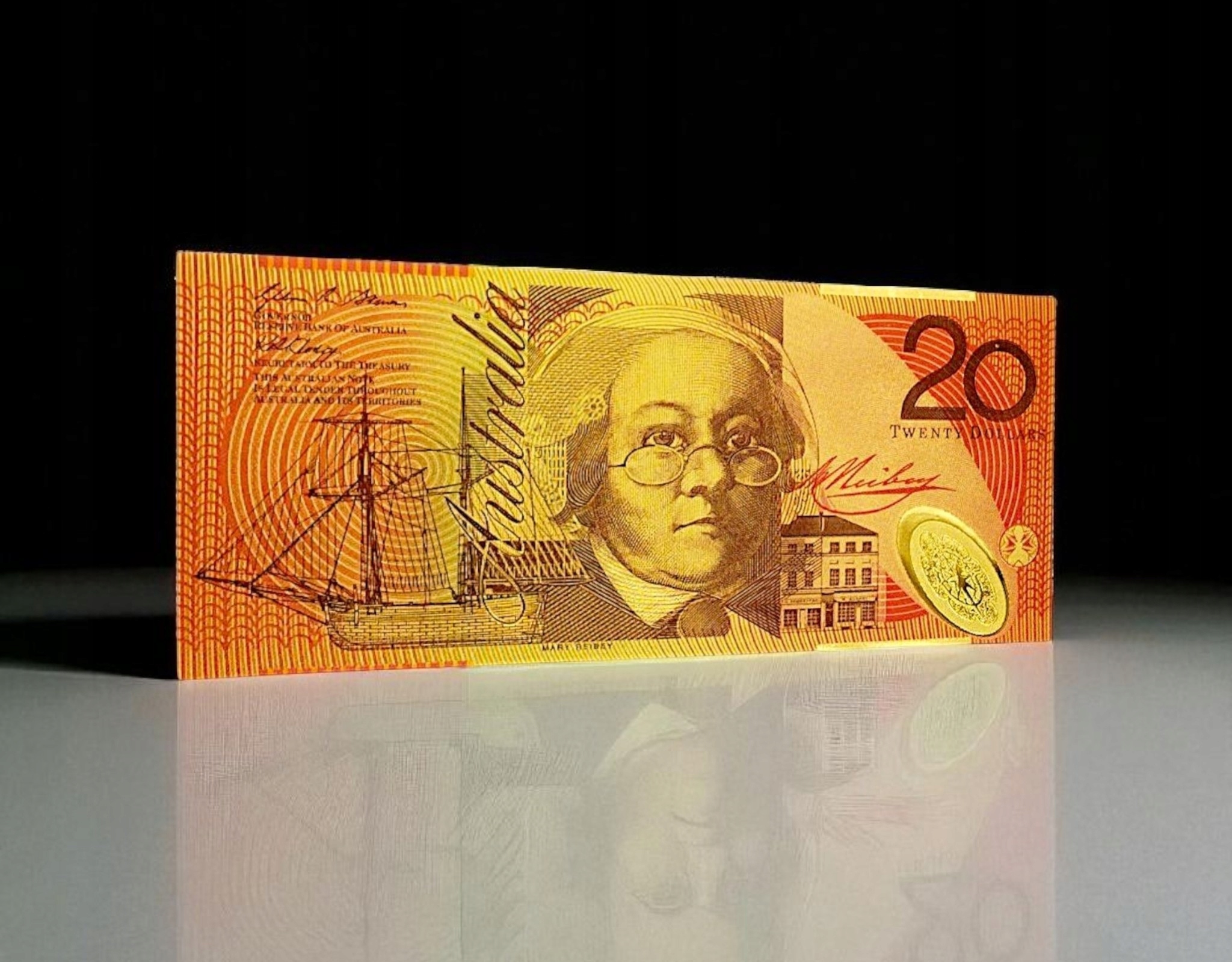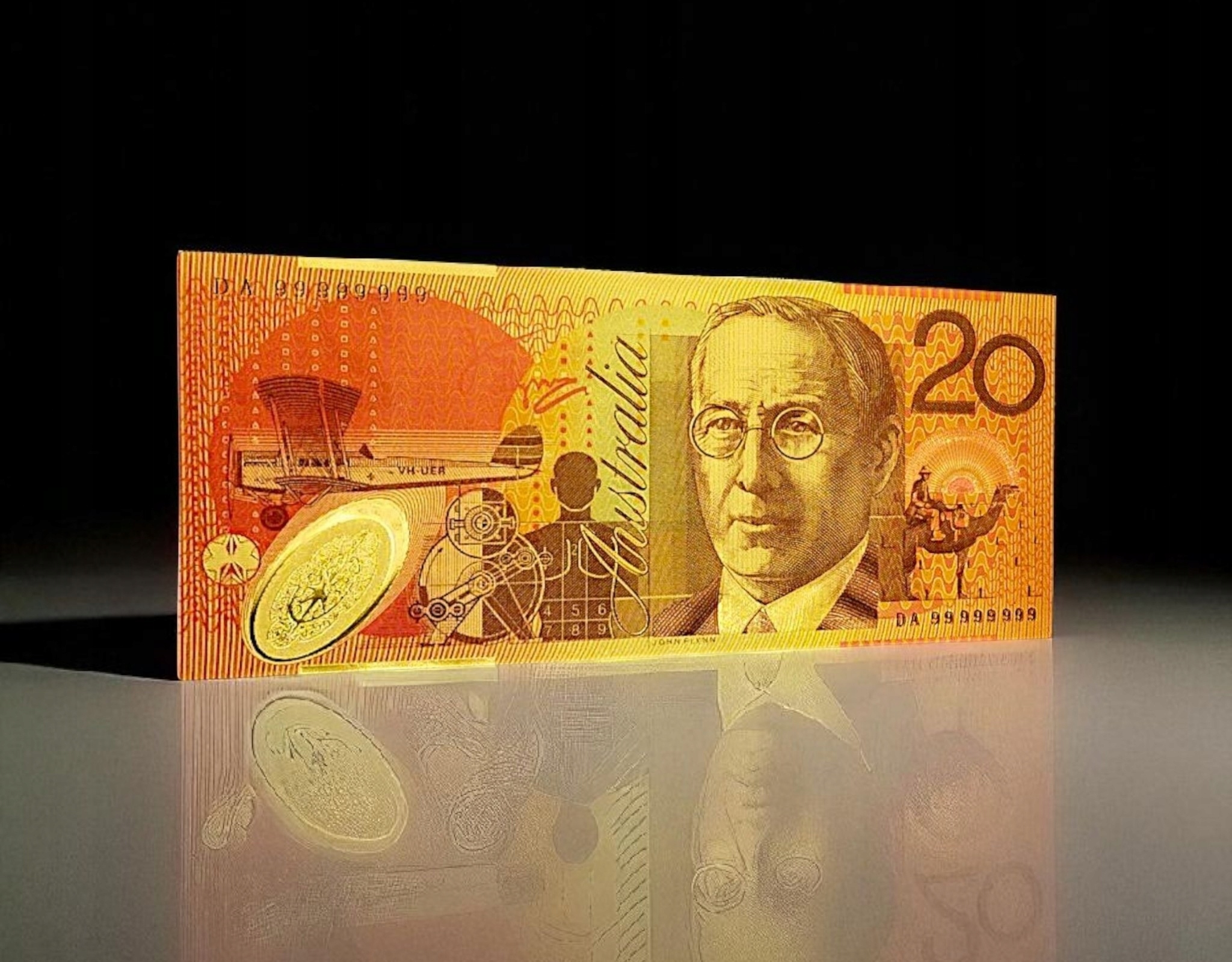 Откройте для себя уникальную коллекционную банкноту, вдохновленную австралийской банкнотой в 20 долларов, покрытую слоем золотой фольги.