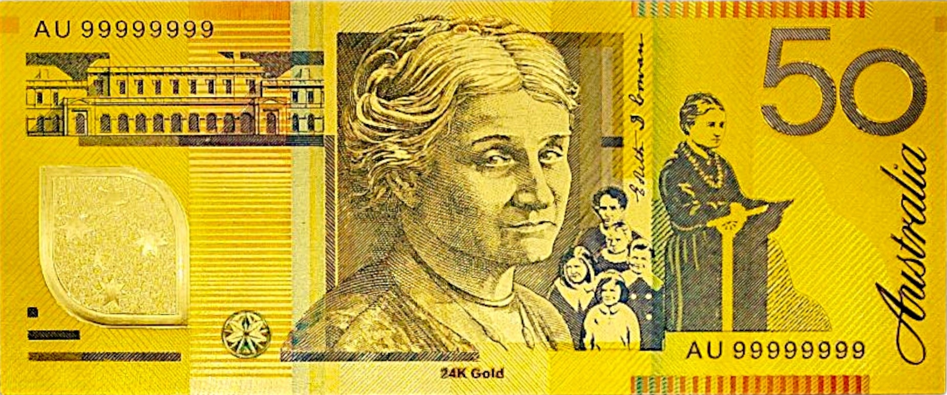 Позолоченная банкнота номиналом 50 долларов Австралии, коллекционная банкнота из ПВХ