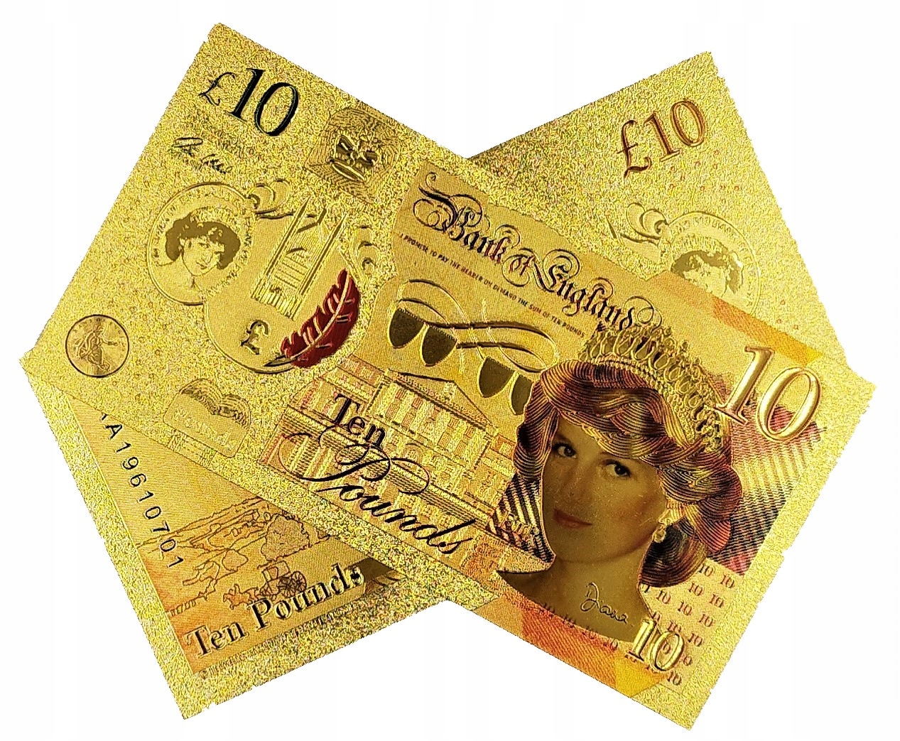 Позолоченная банкнота принцессы Дианы номиналом 10 фунтов
