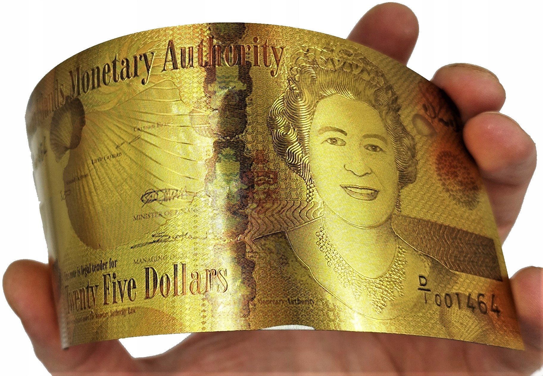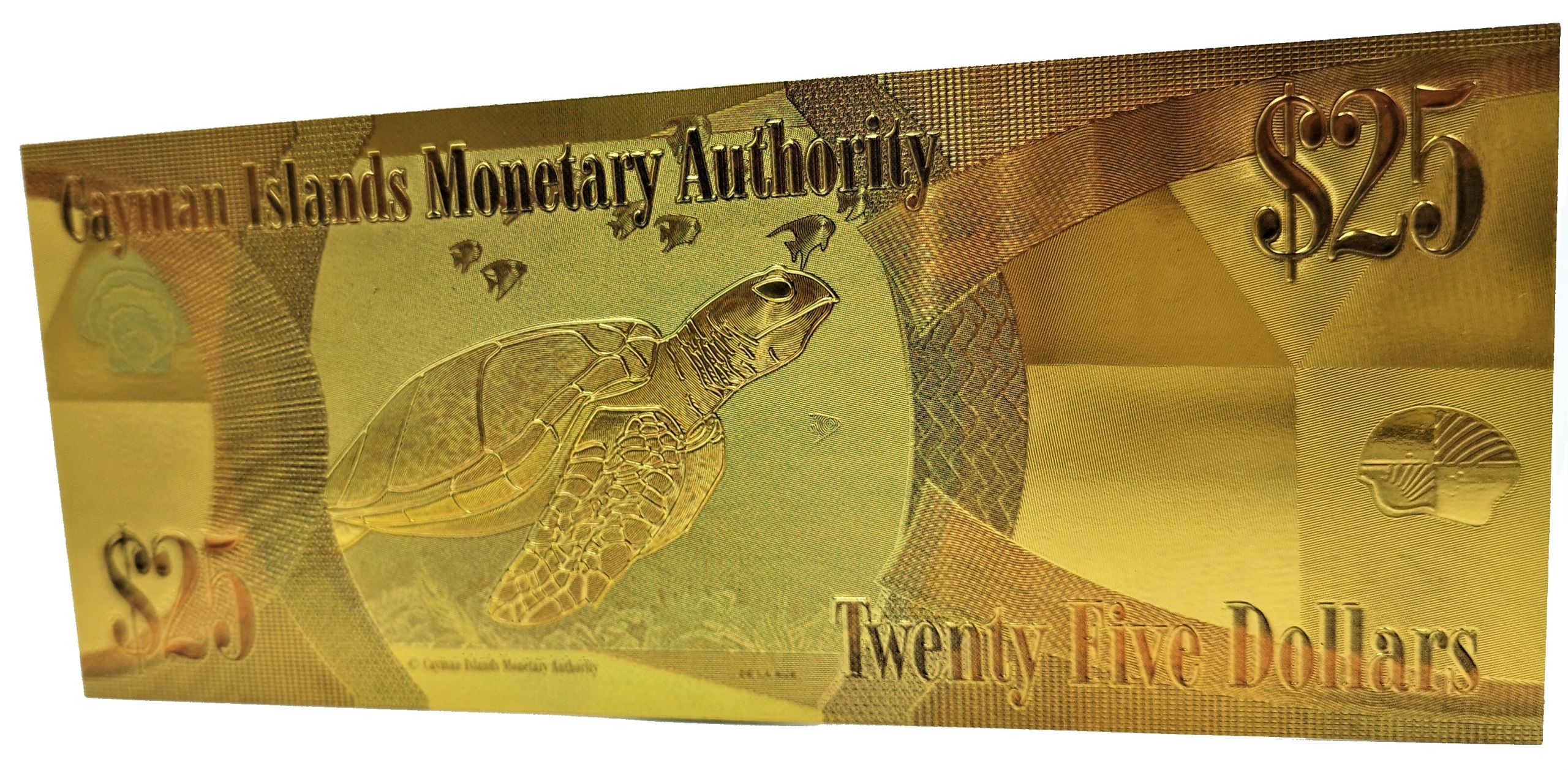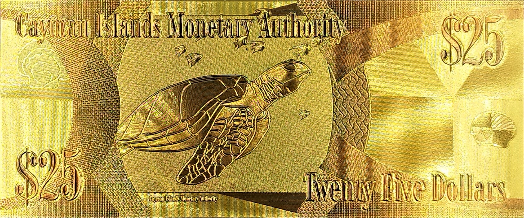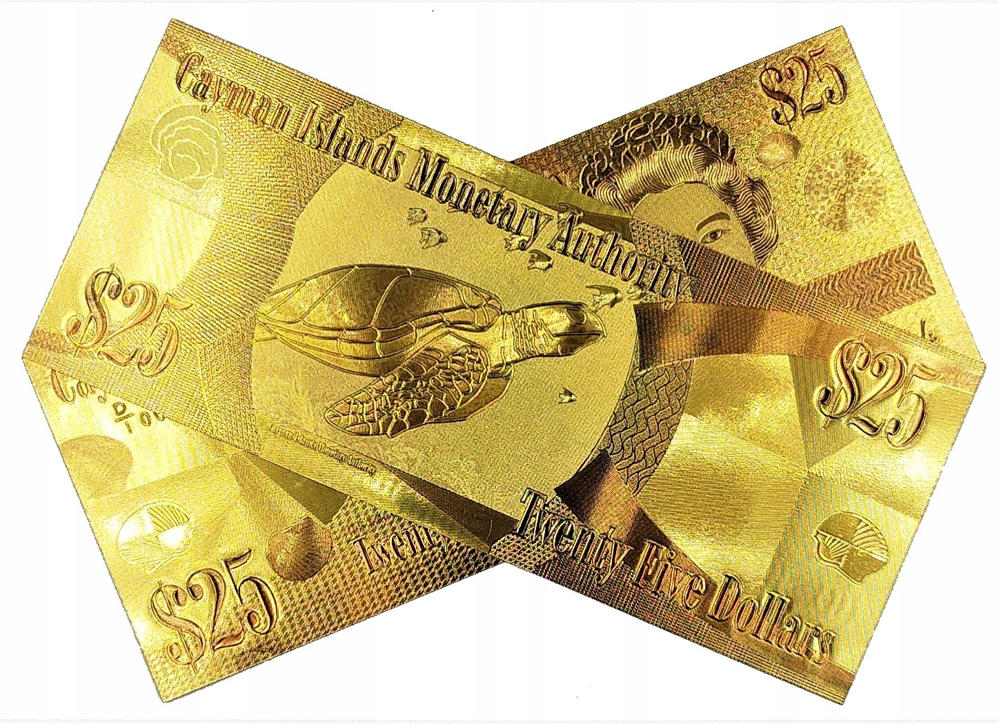 ПОЗОЛОЧЕННАЯ БАНКНОТА 25 ДОЛЛАРОВ КАЙМАНОВЫ ОСТРОВА КОРОЛЕВА ЕЛИЗАВЕТА II