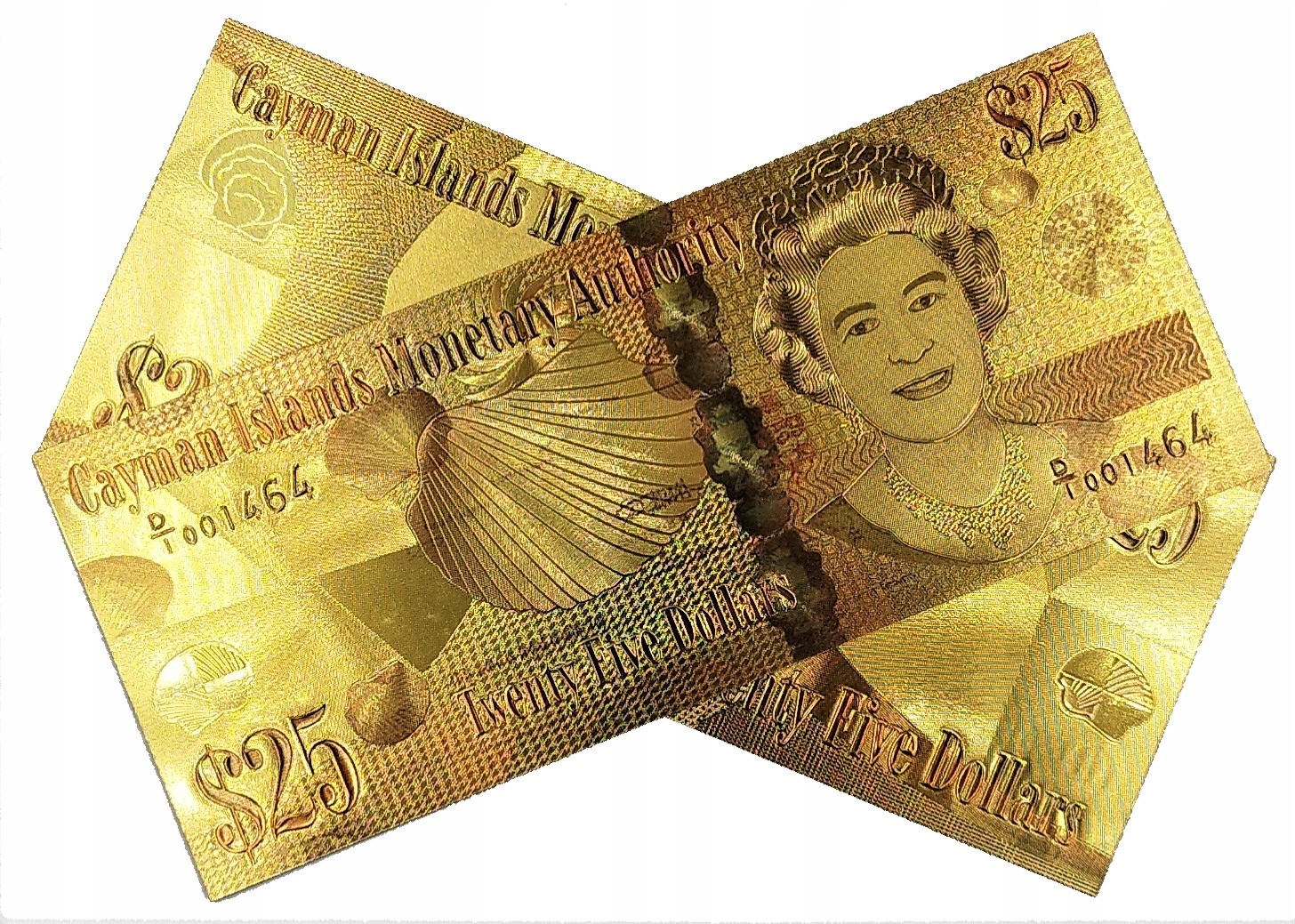 Позолочена банкнота 25 доларів, королева Кайманових островів Єлизавета 2