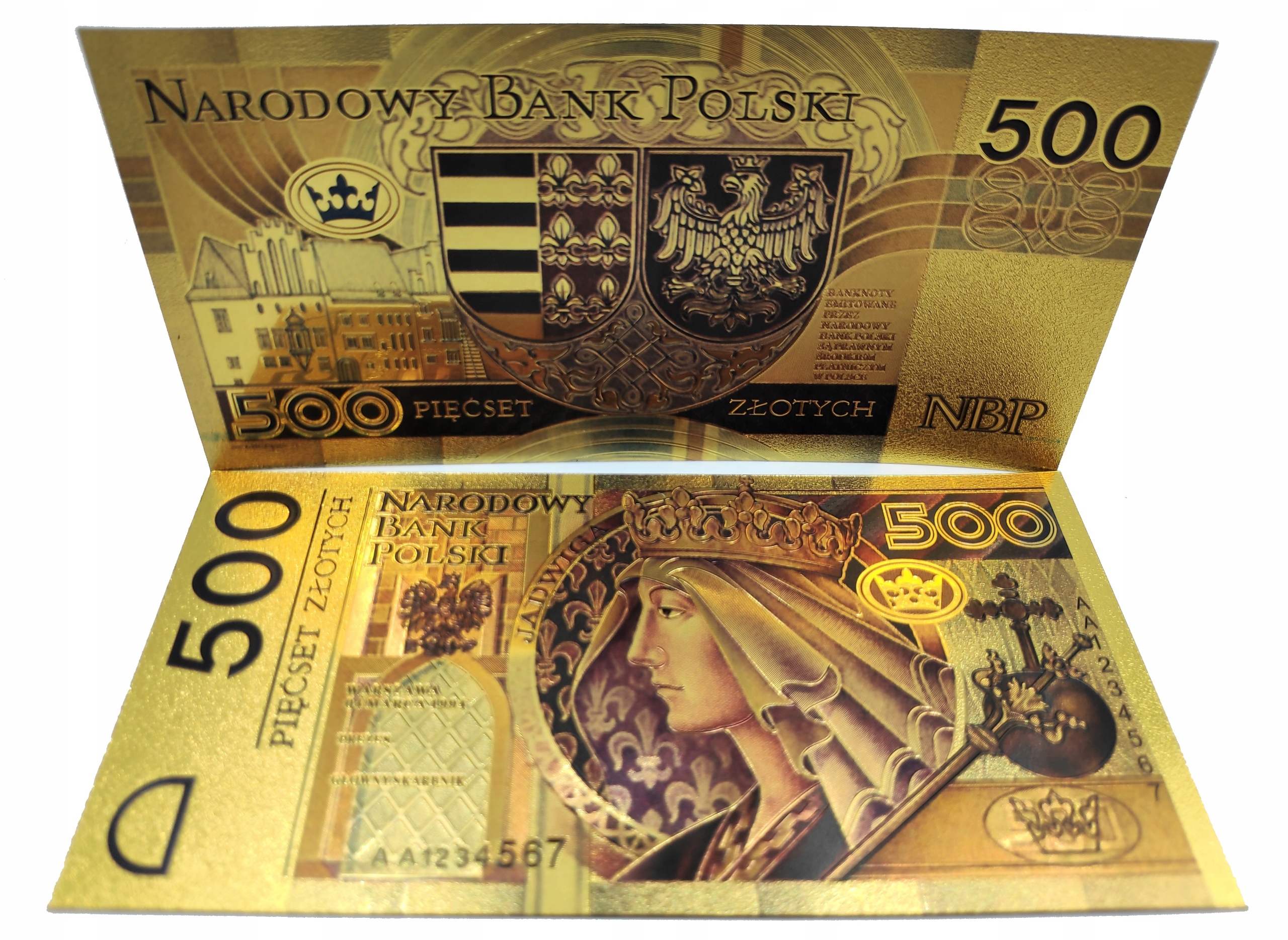 Позолочена банкнота 500 злотих, королева Ядвіга
