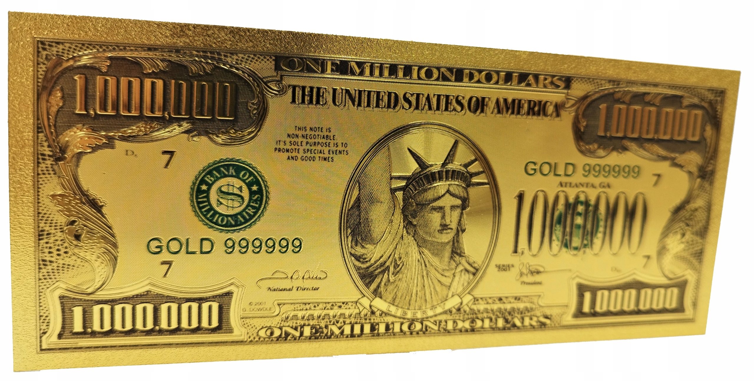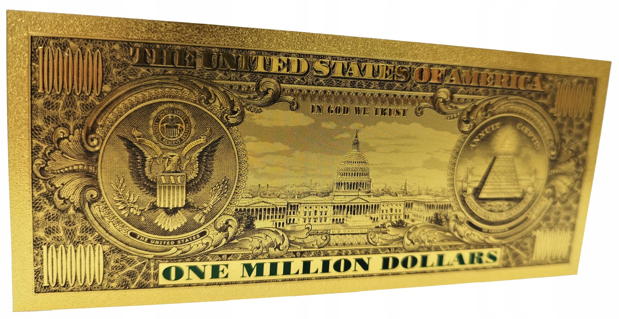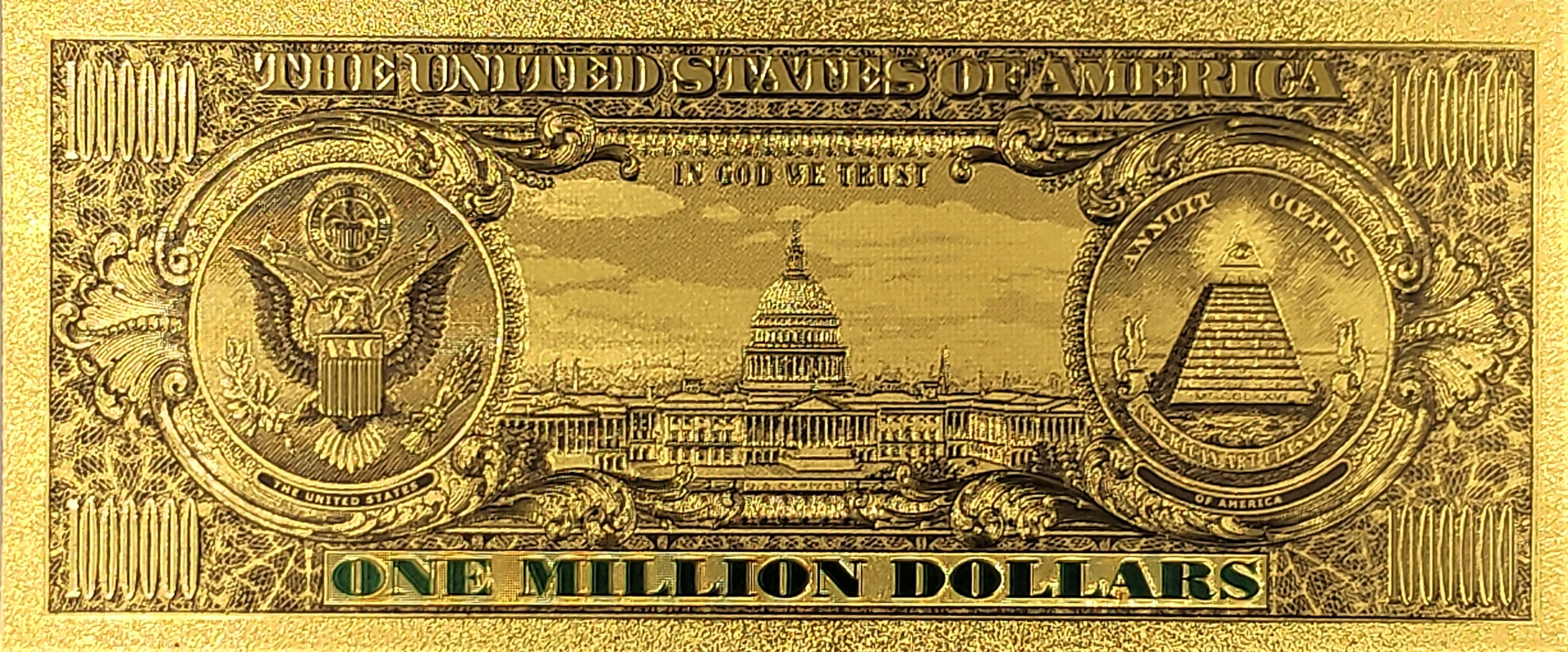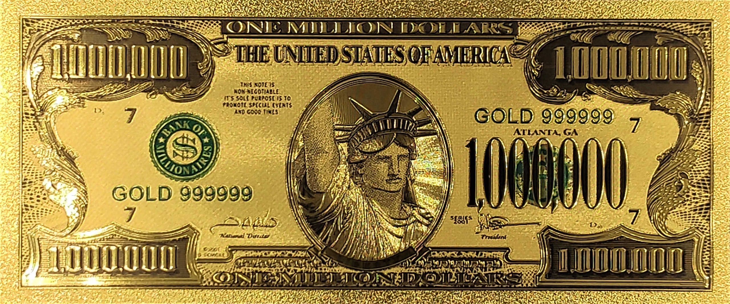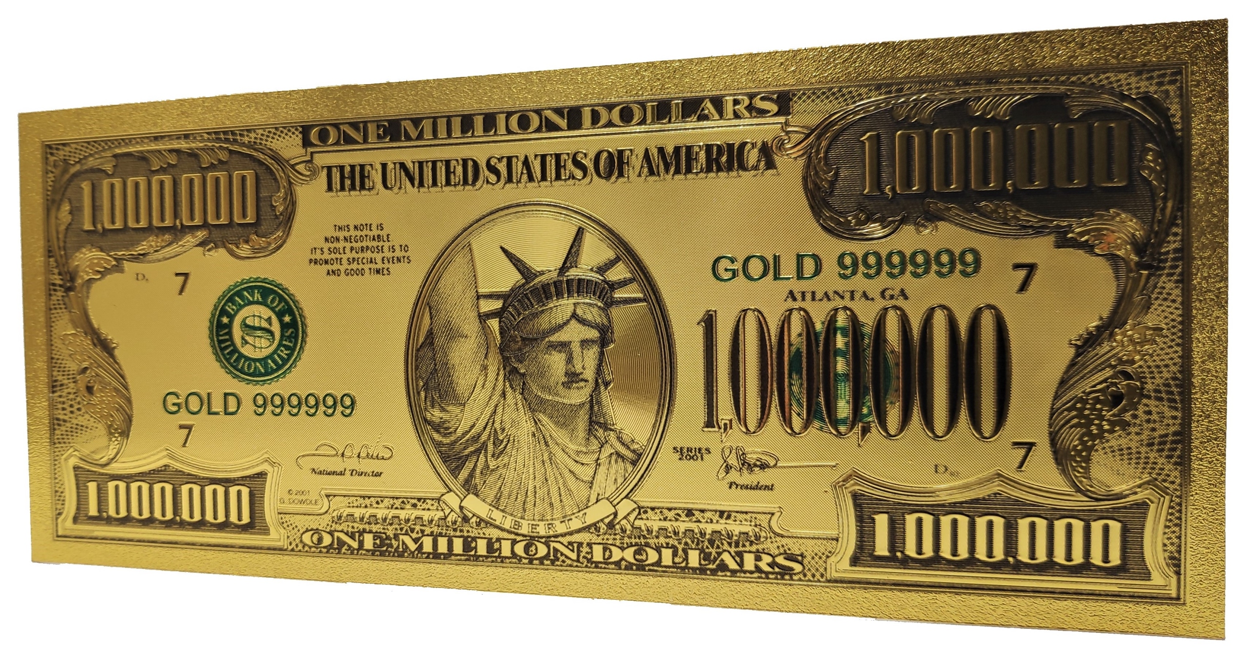 Красивая позолоченная коллекционная банкнота номиналом Один миллион долларов.