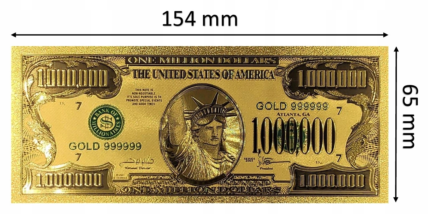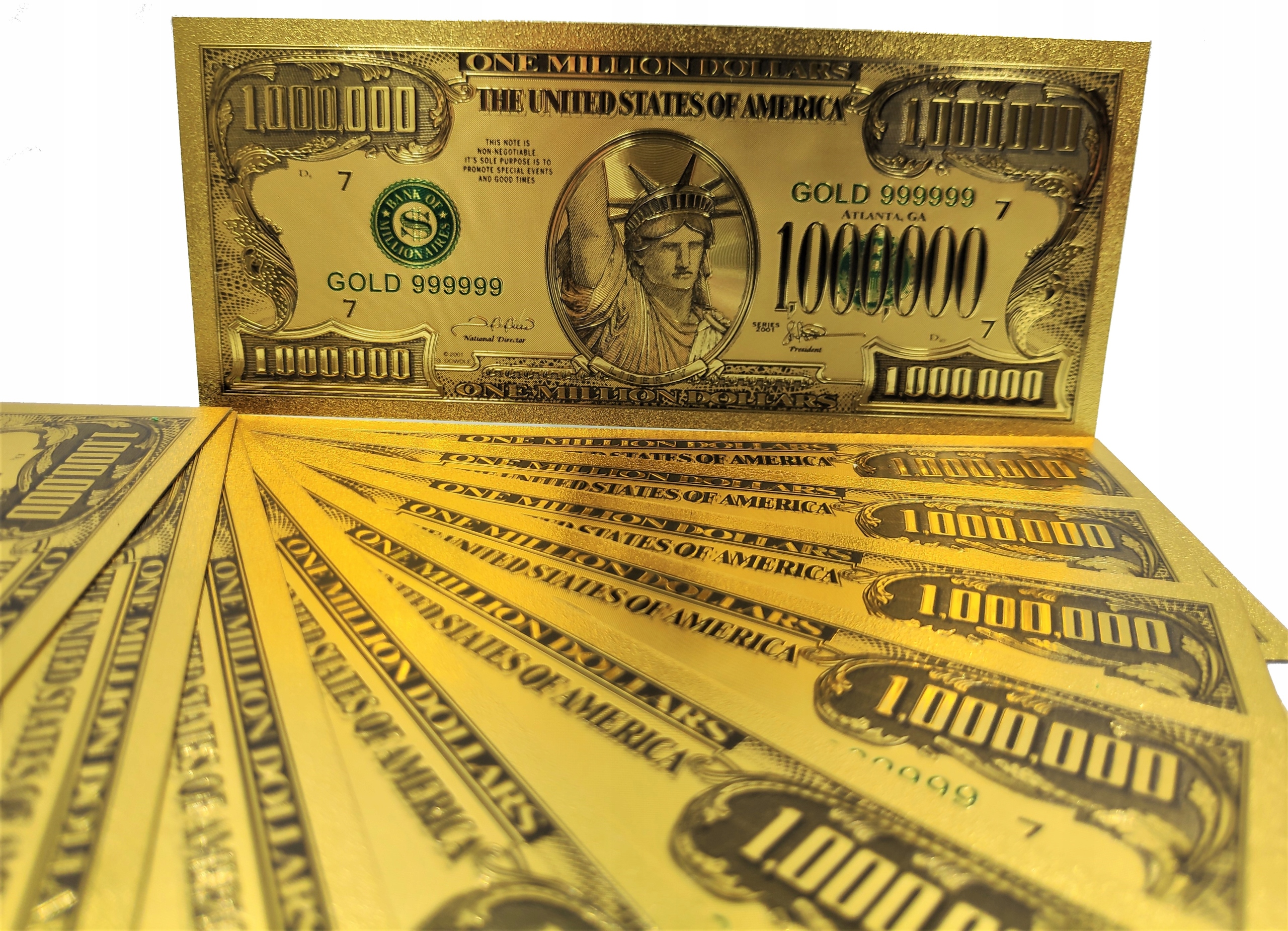 КОЛЛЕКЦИОННАЯ ПОЗОЛОЧЕННАЯ БАНКНОТА НА МИЛЛИОН ДОЛЛАРОВ