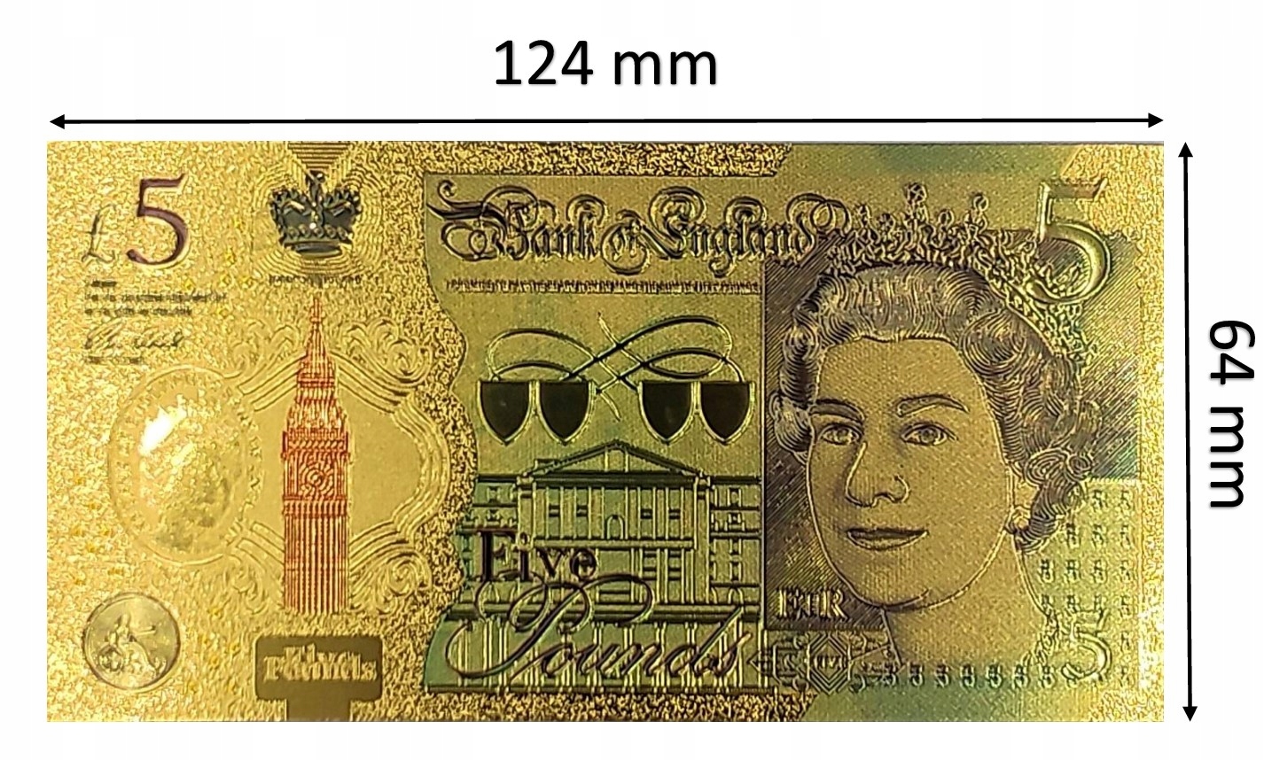 Позолочена банкнота королеви Єлизавети II номіналом 5 фунтів