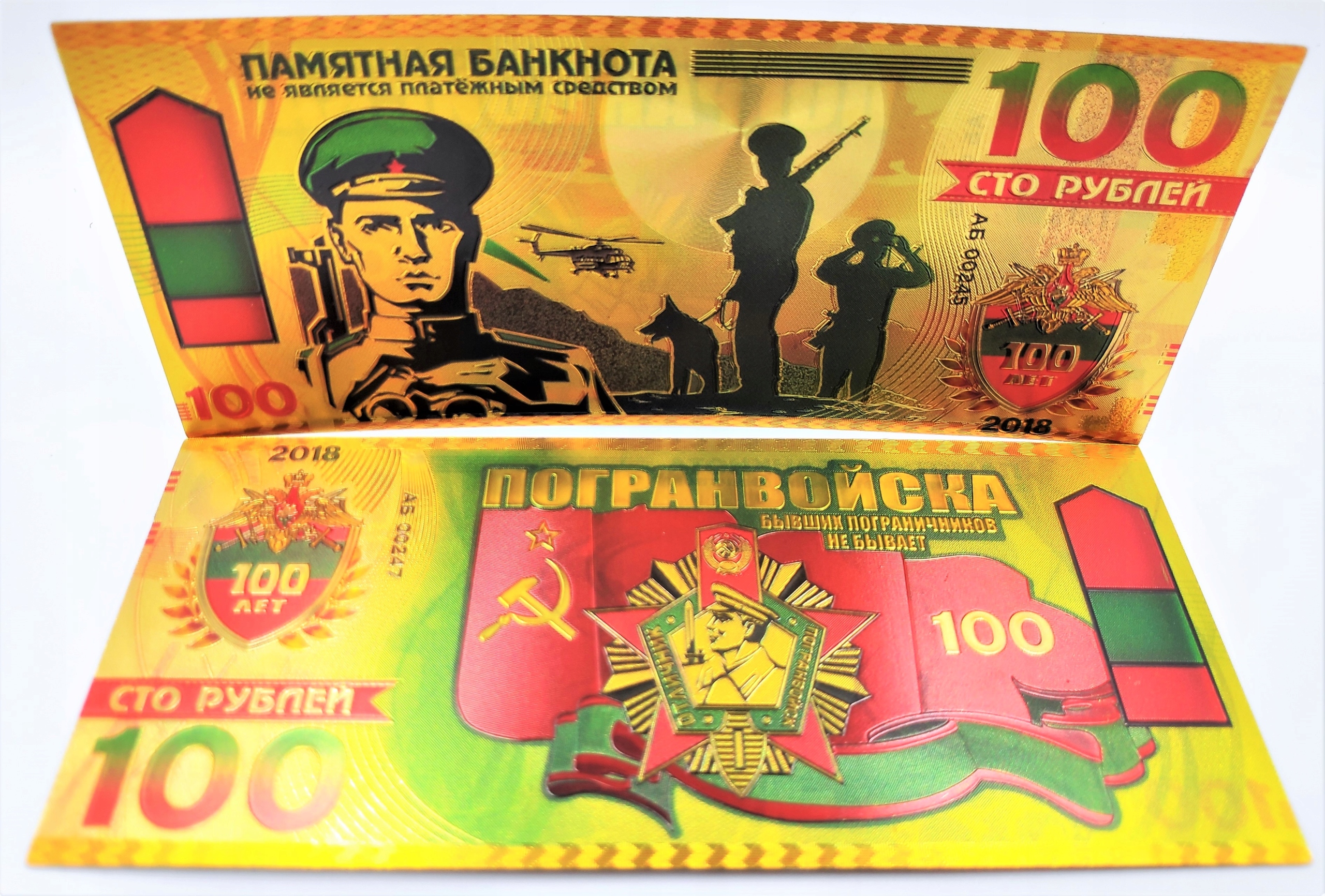Позолочена банкнота номіналом 100 рублів прикордонникам