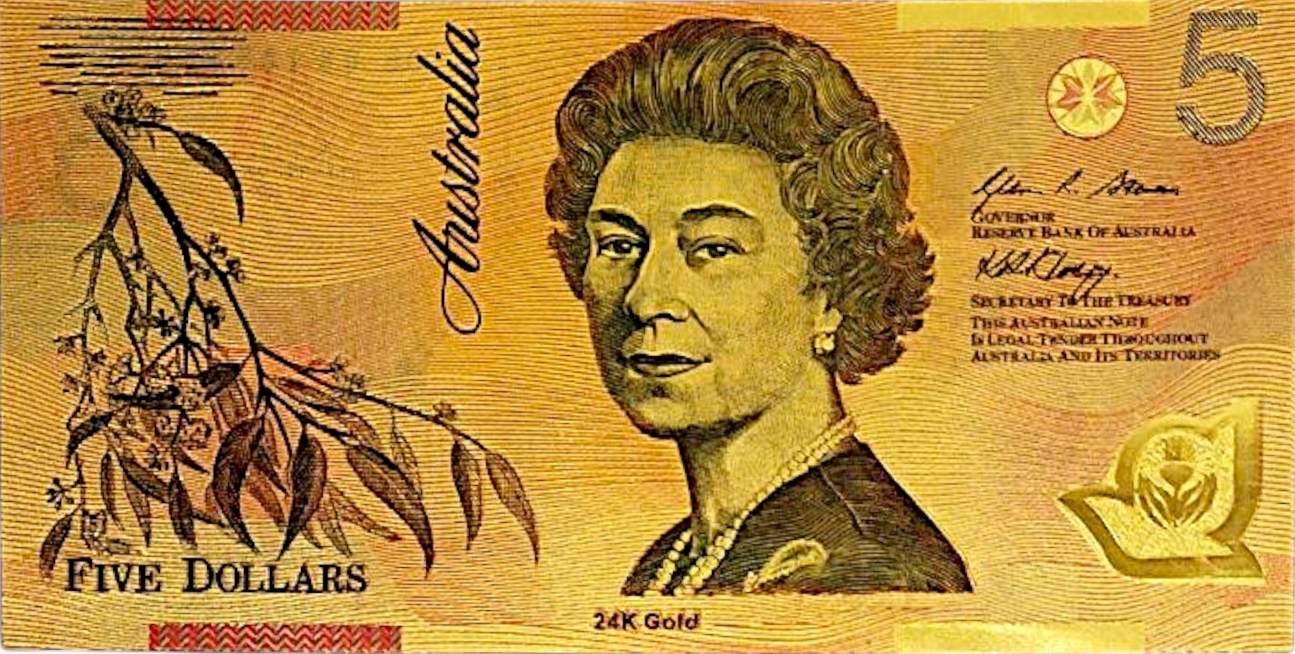 Позолоченная банкнота 5 долларов Австралии, коллекционная банкнота Элизабет из ПВХ