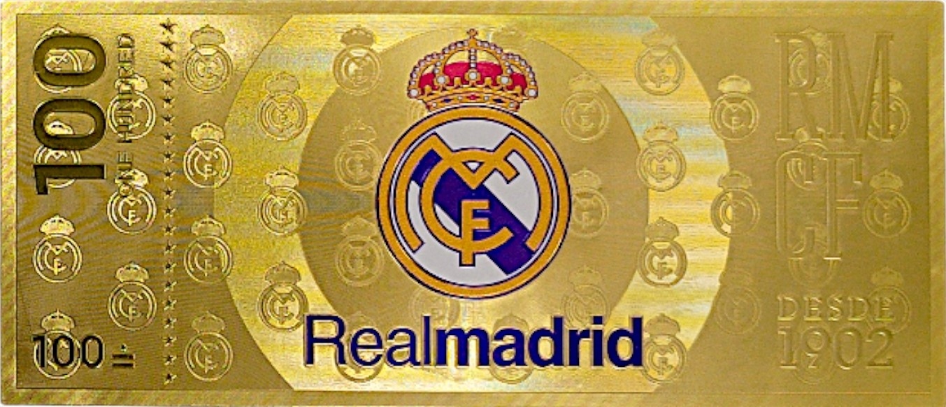 КРАСИВАЯ ПОЗОЛОЧЕННАЯ КОЛЛЕКЦИОННАЯ БАНКНОТА «Реал Мадрид»