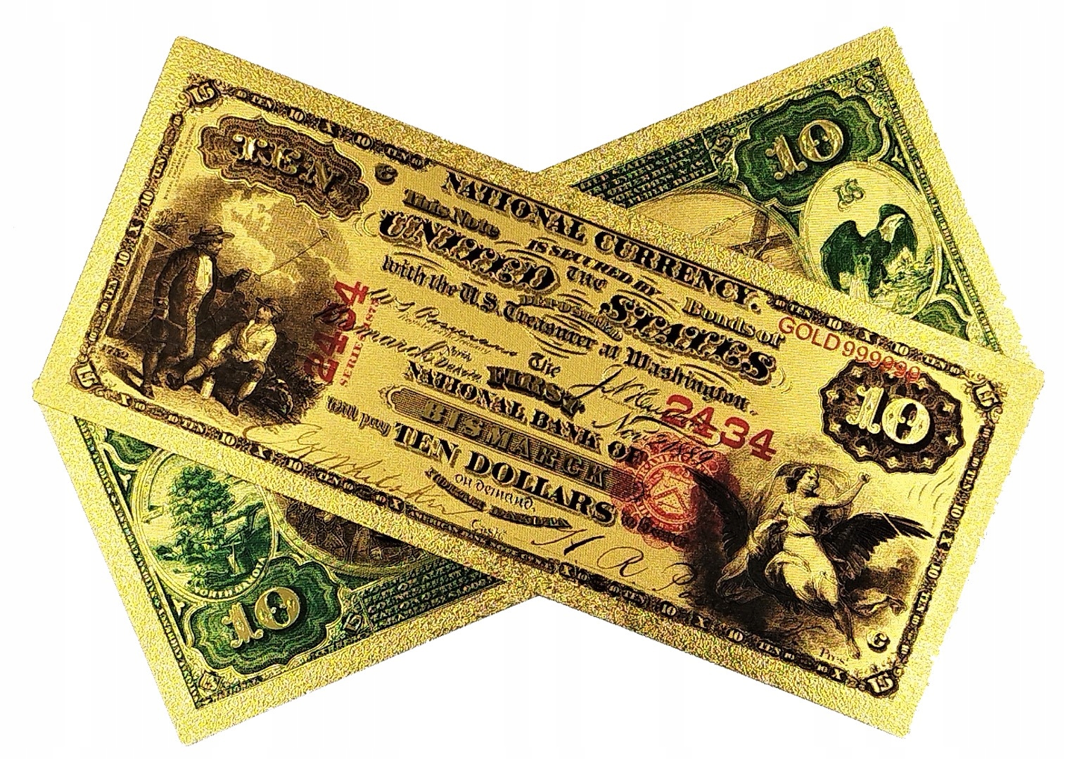 Позолочена колекційна банкнота 10 доларів 1875 року