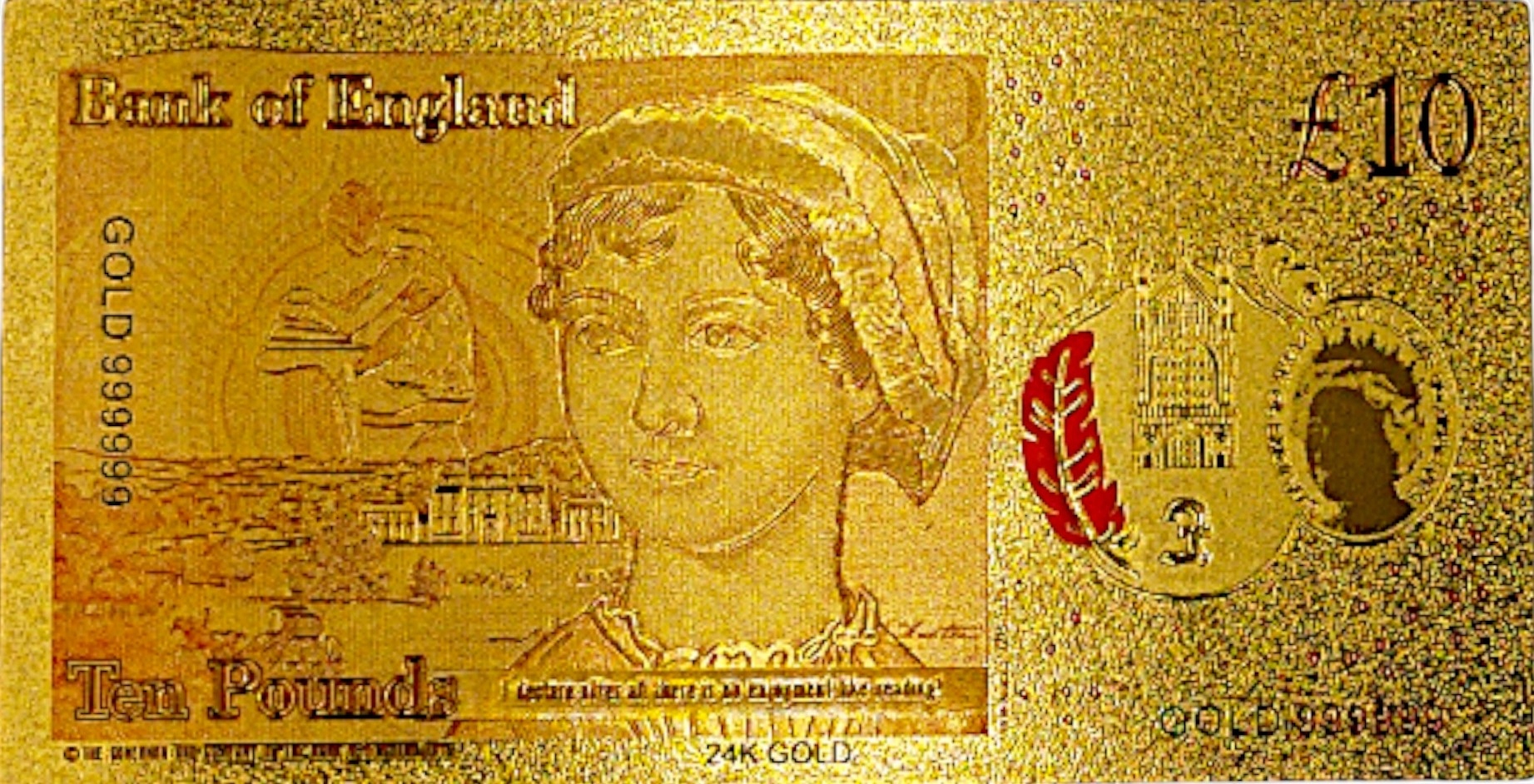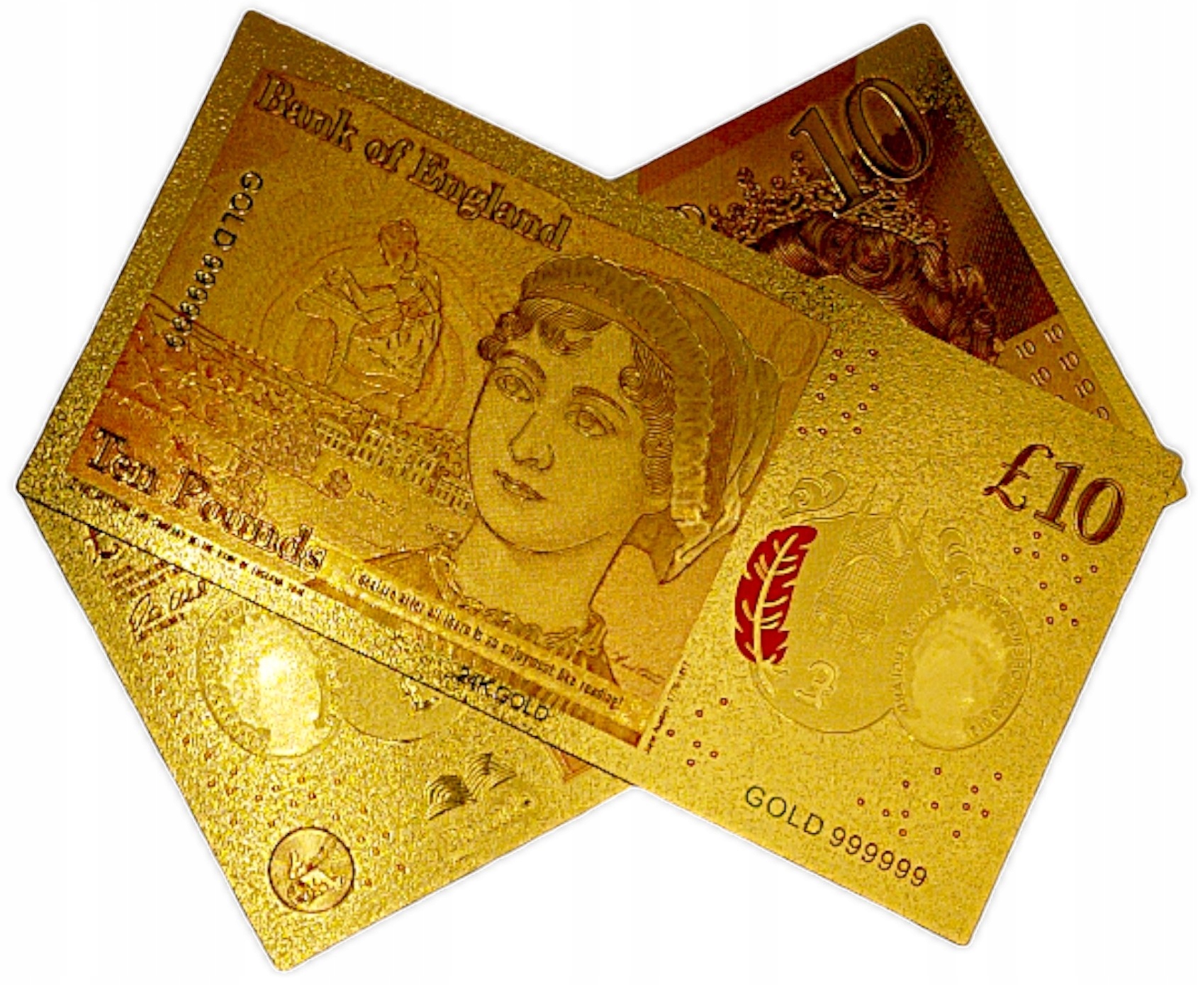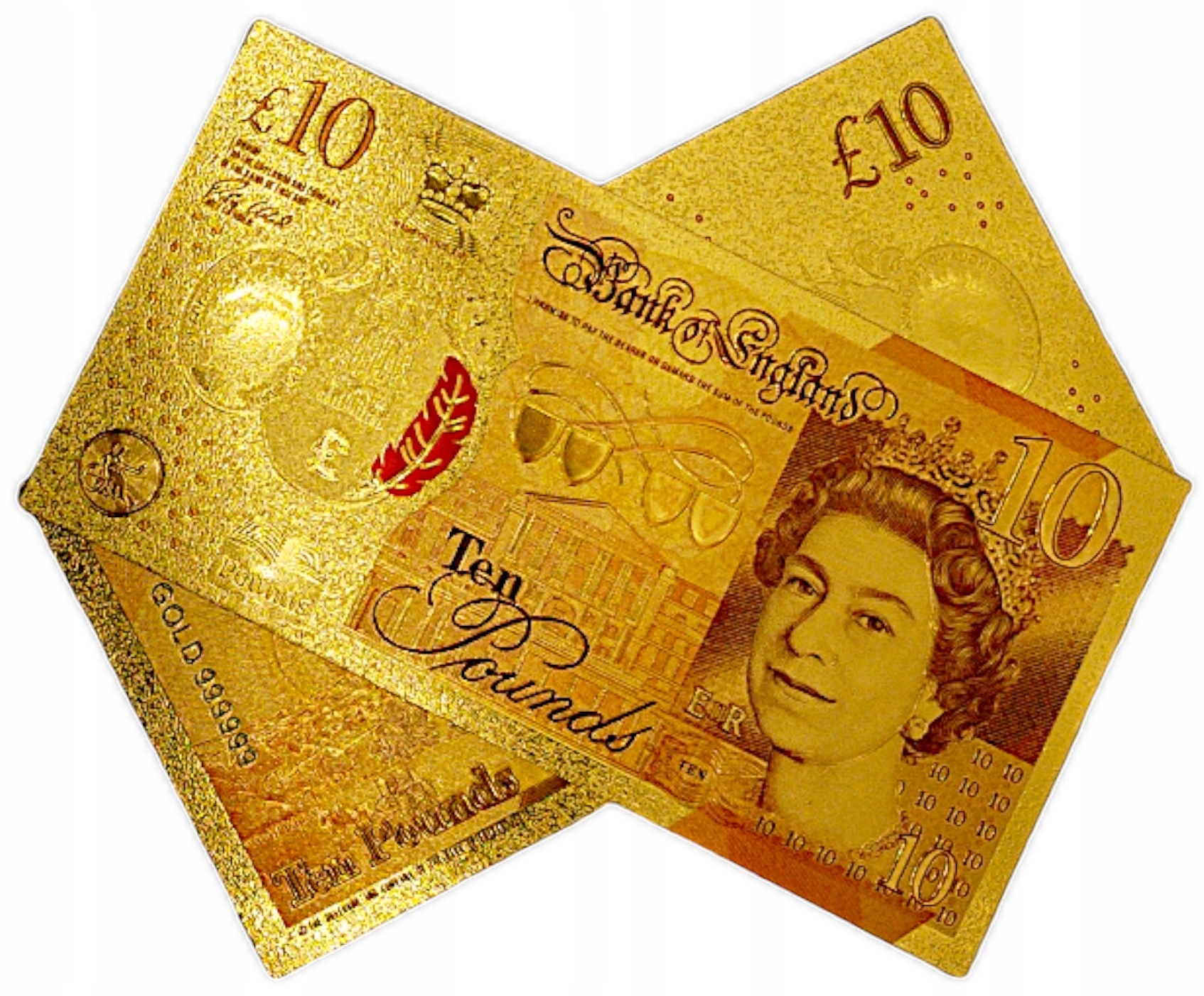 КОЛЛЕКЦИОННАЯ БАНКНОТА 10 БРИТАНСКИХ ФУНТОВ, ПОЗОЛОЧЕННАЯ, ПВХ