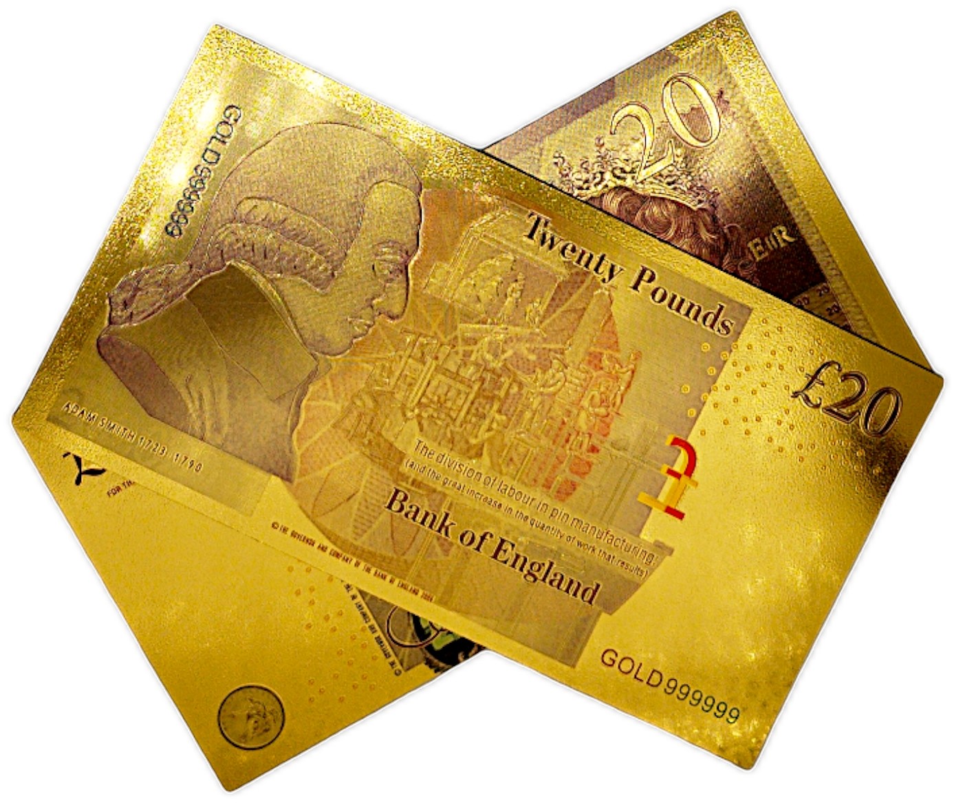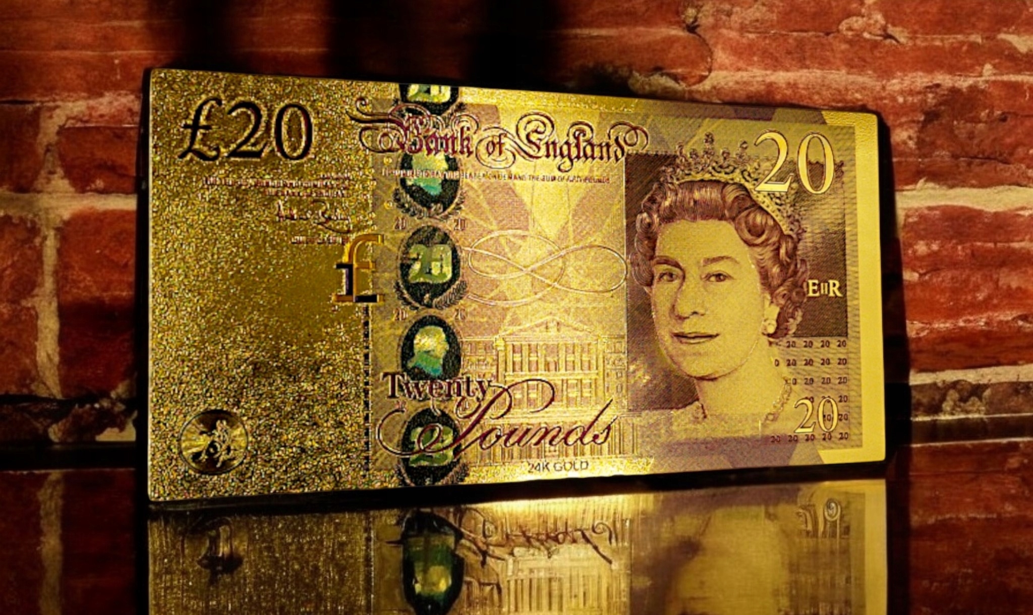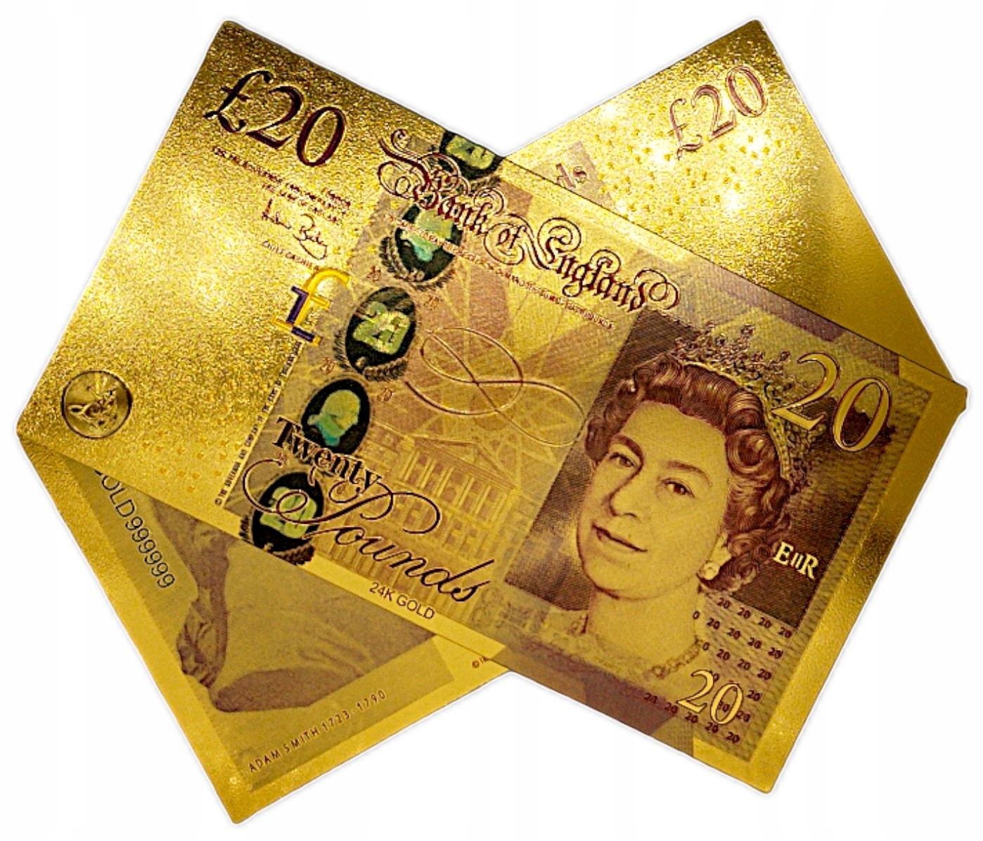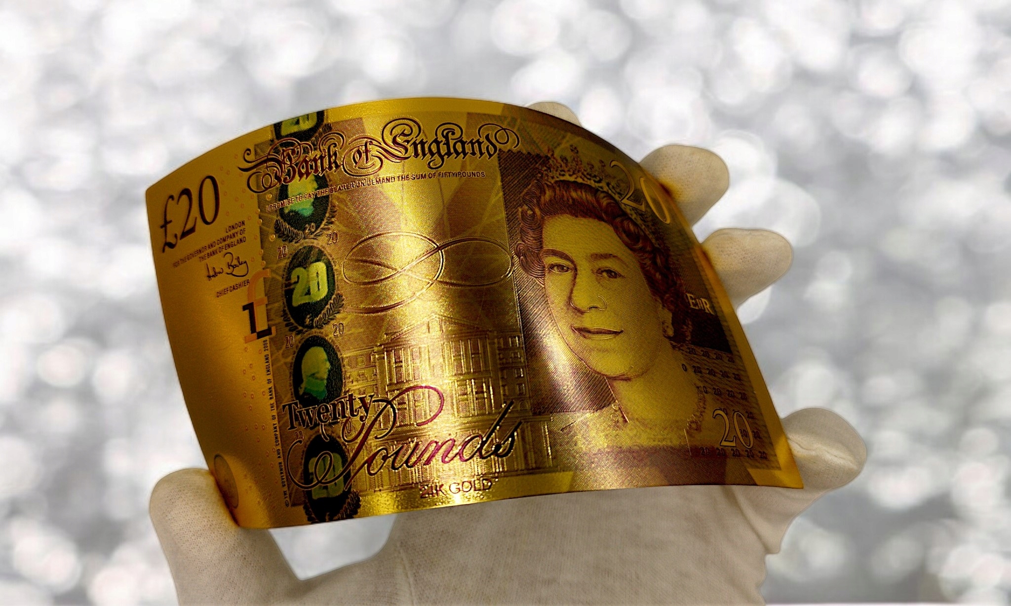 КОЛЛЕКЦИОННАЯ БАНКНОТА 20 БРИТАНСКИХ ФУНТОВ, ПОЗОЛОЧЕННАЯ, ПВХ