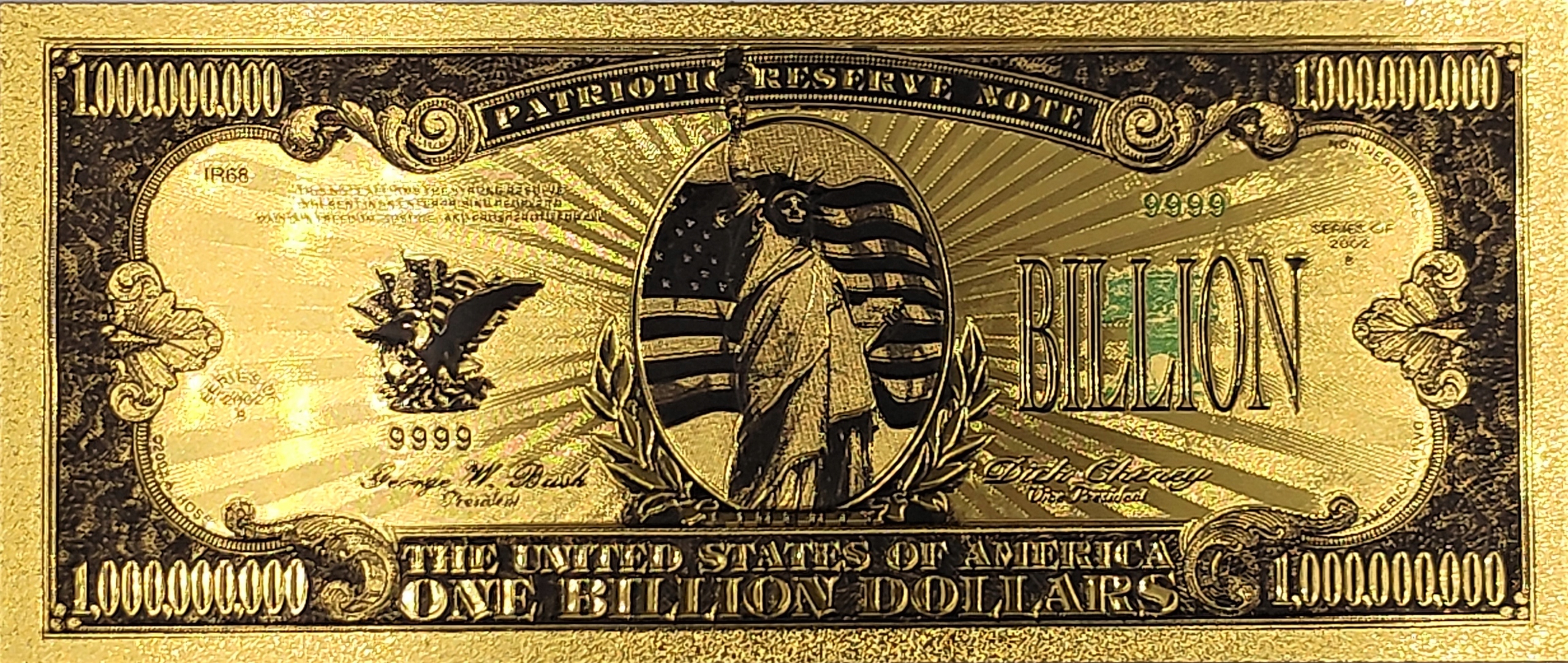 КОЛЛЕКЦИОННАЯ БАНКНОТА ТРИЛЛИОН ДОЛЛАРОВ, ПОЗОЛОЧЕННАЯ