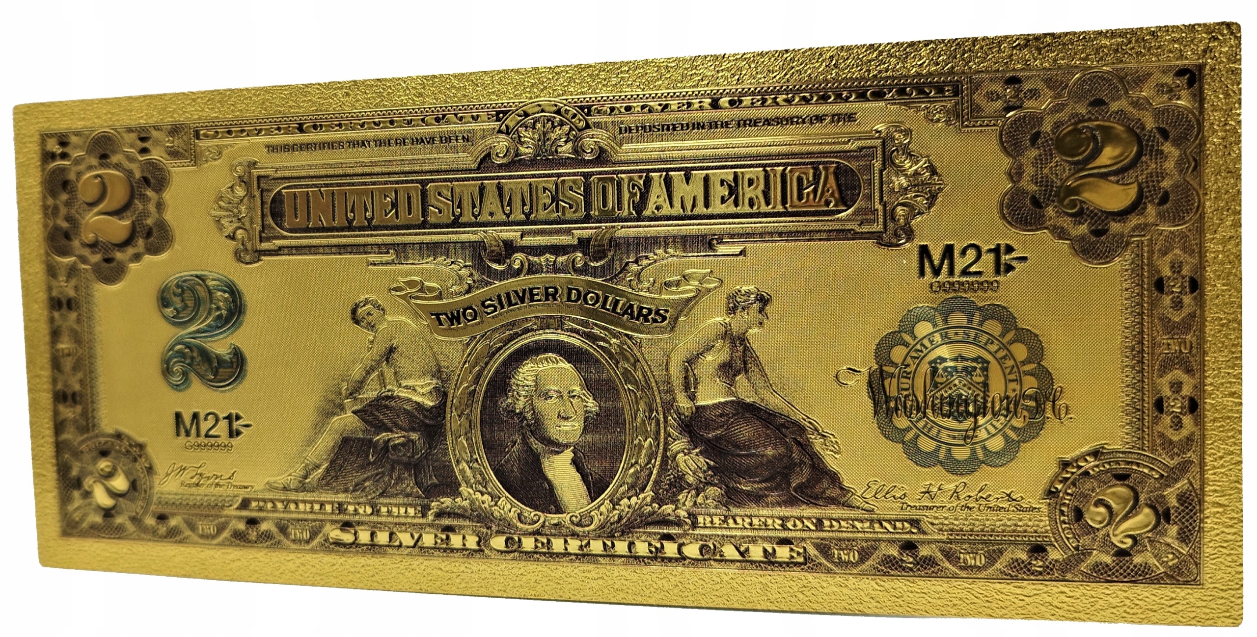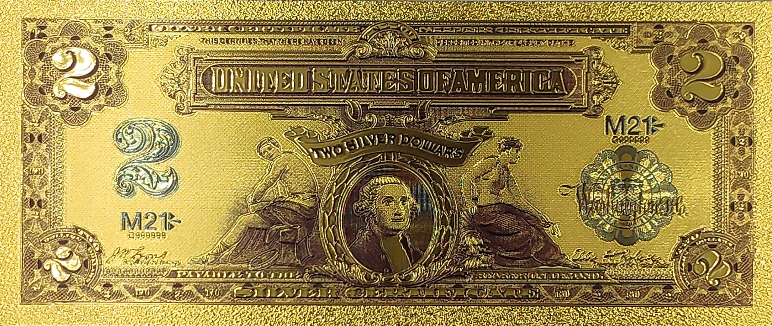 Позолоченная коллекционная банкнота номиналом 2 доллара 1899 г.