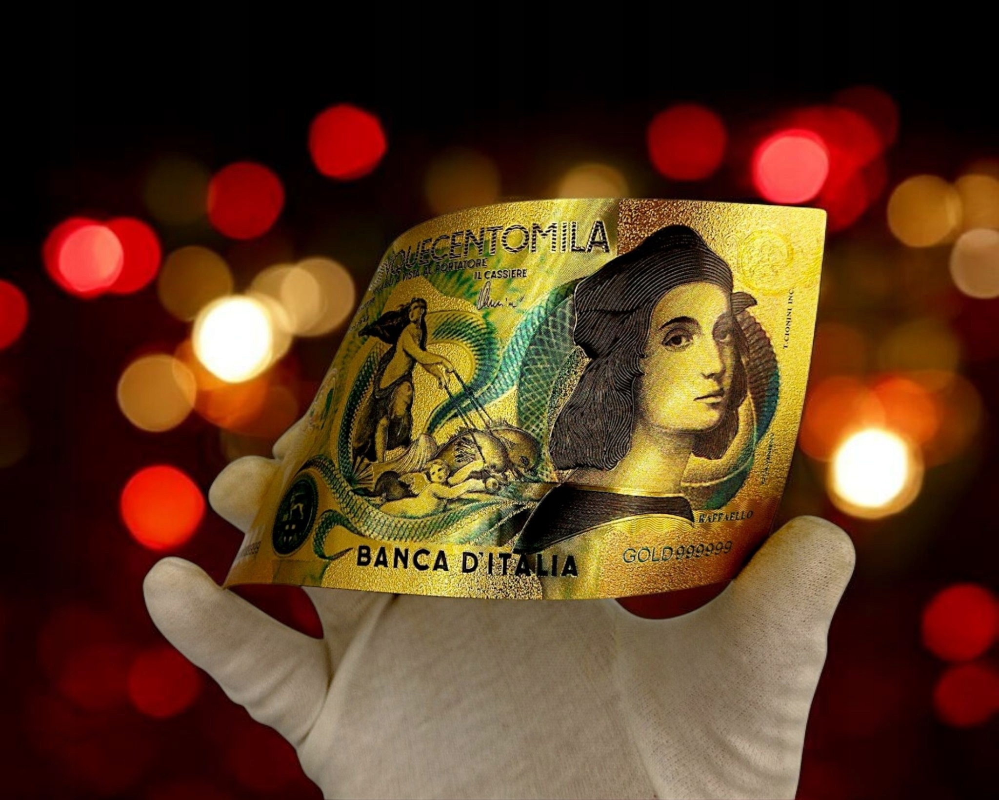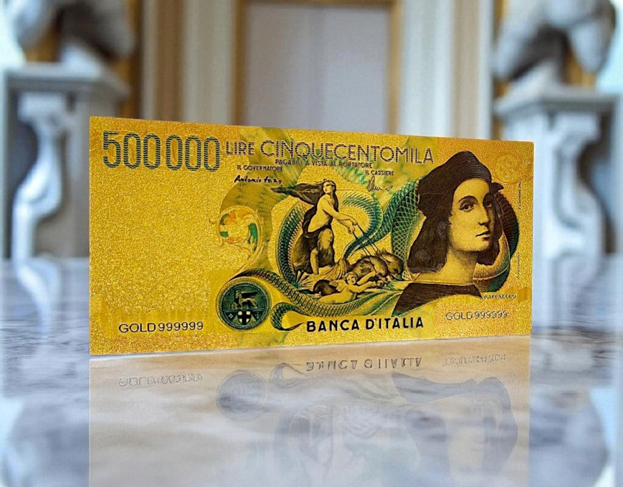Позолоченная коллекционная банкнота RAFFAELLO номиналом 500 000 лир из ПВХ, подарочная