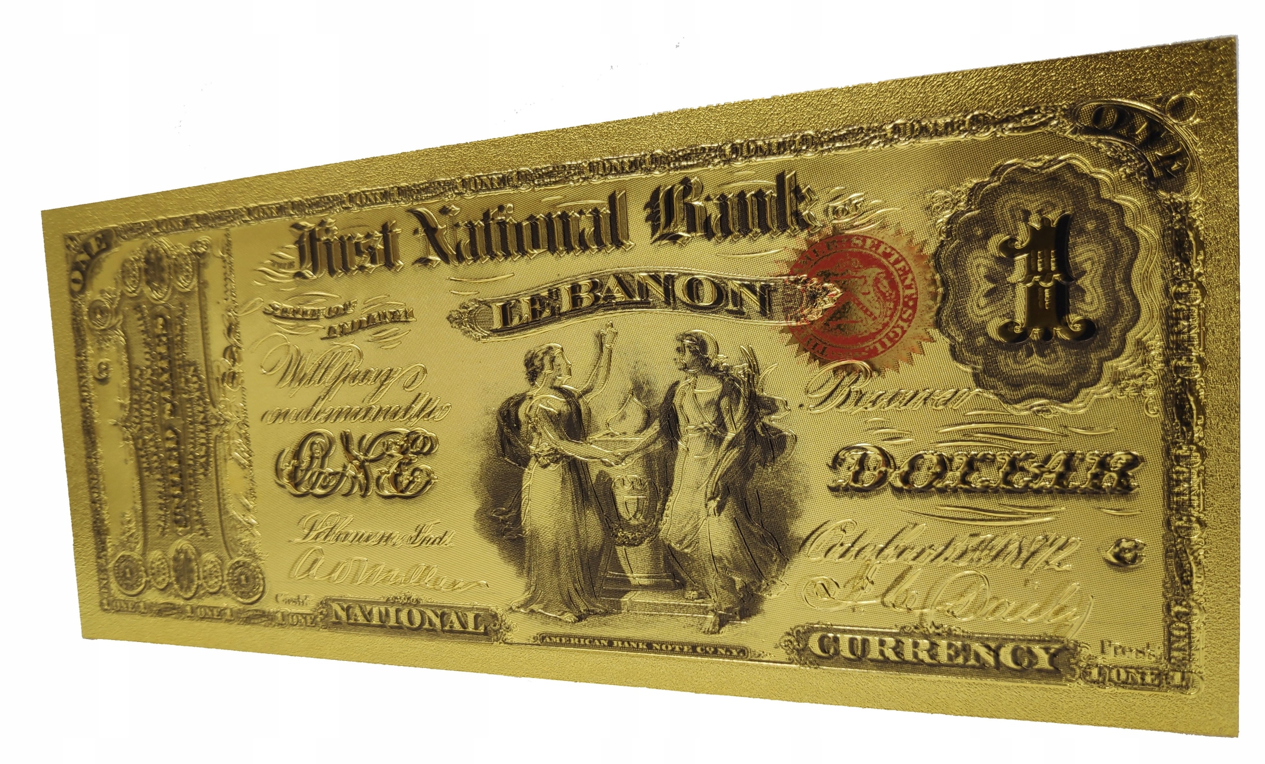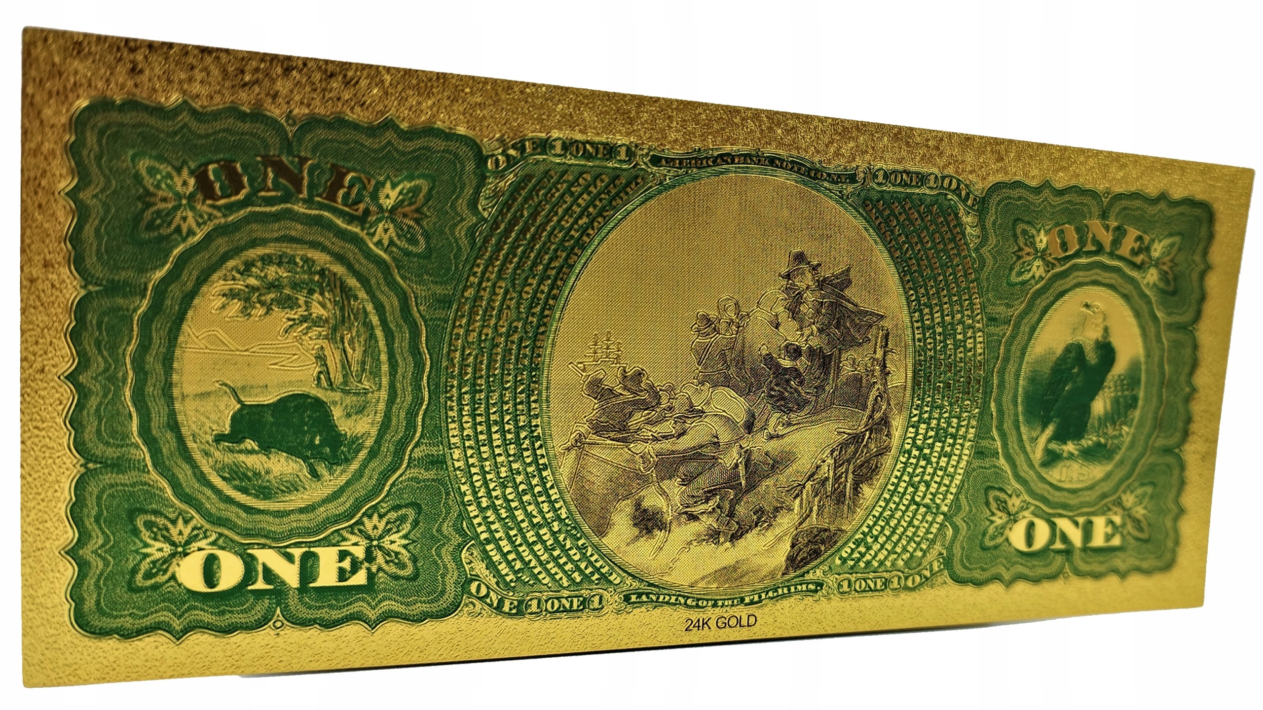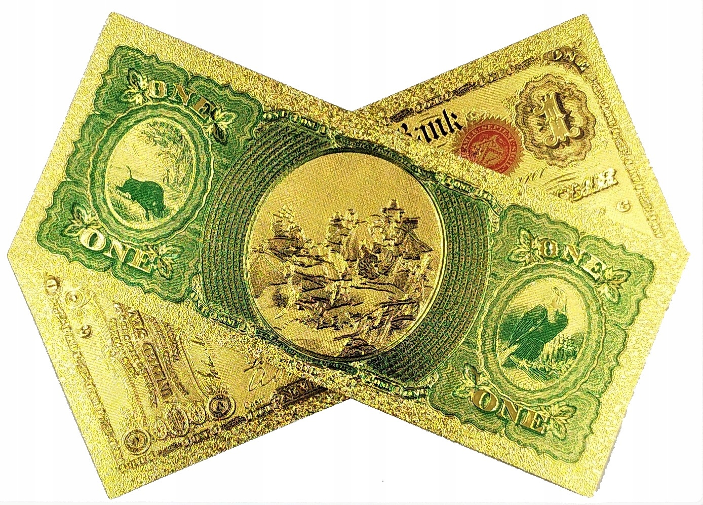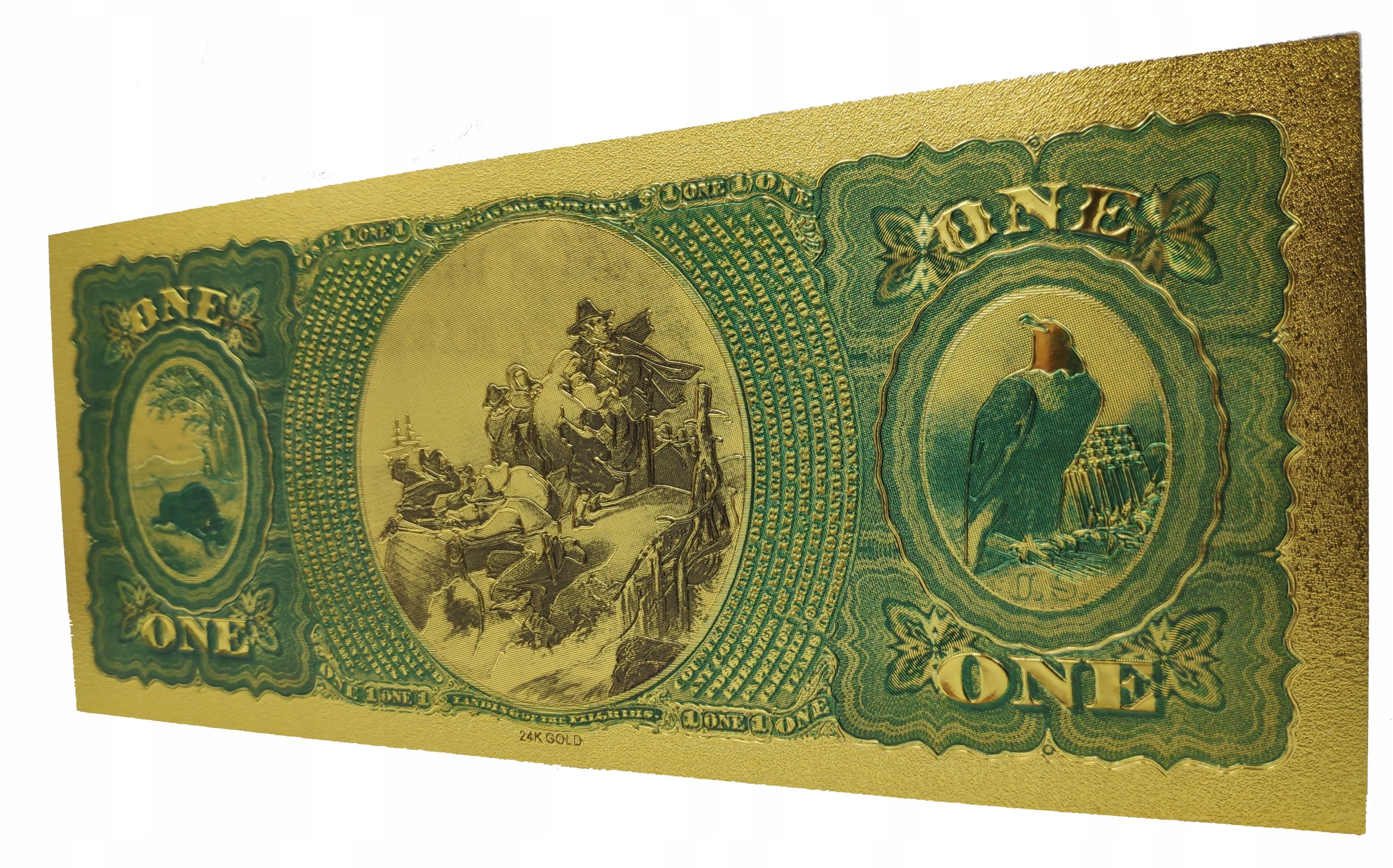 Точная копия американской банкноты первой серии 1875 года, изготовленная из ПВХ и покрытая с золотой фольгой