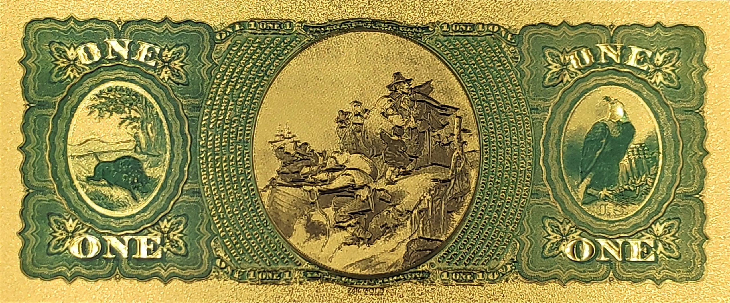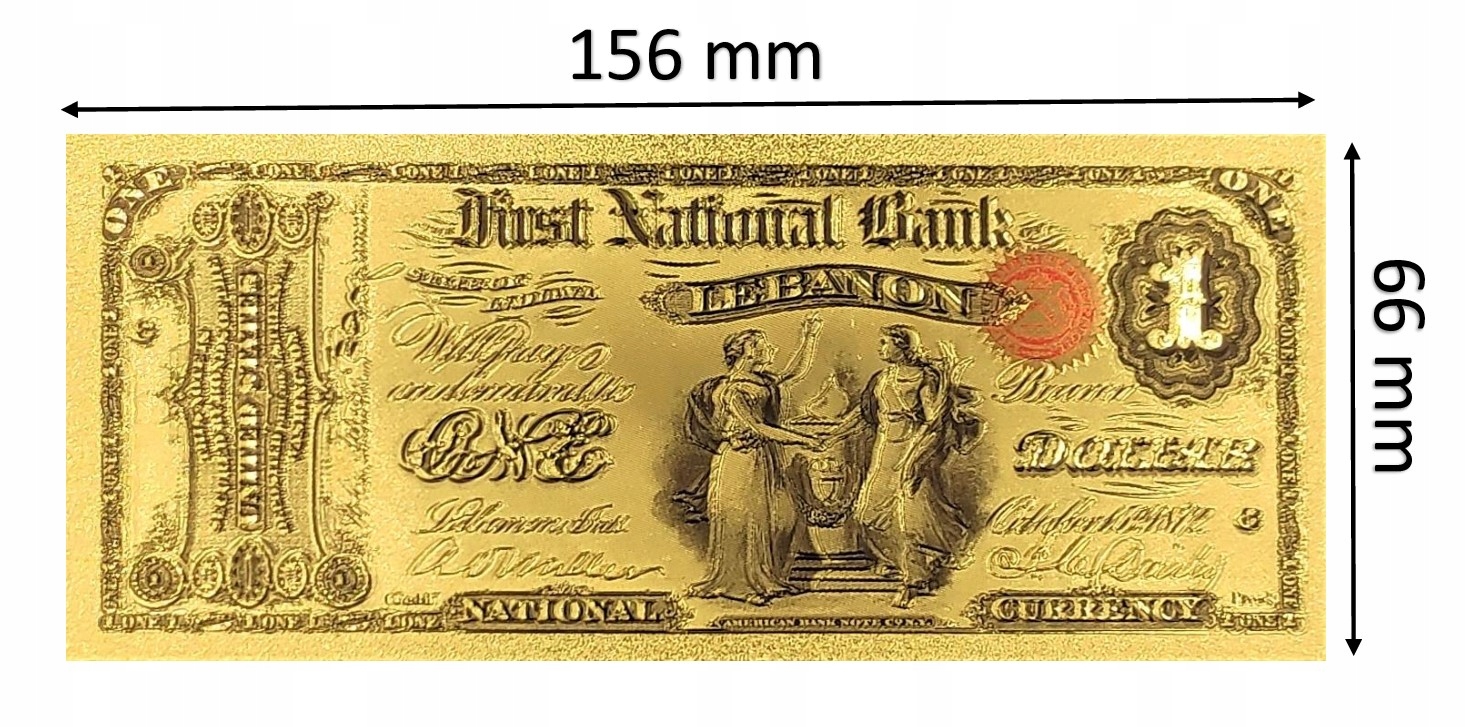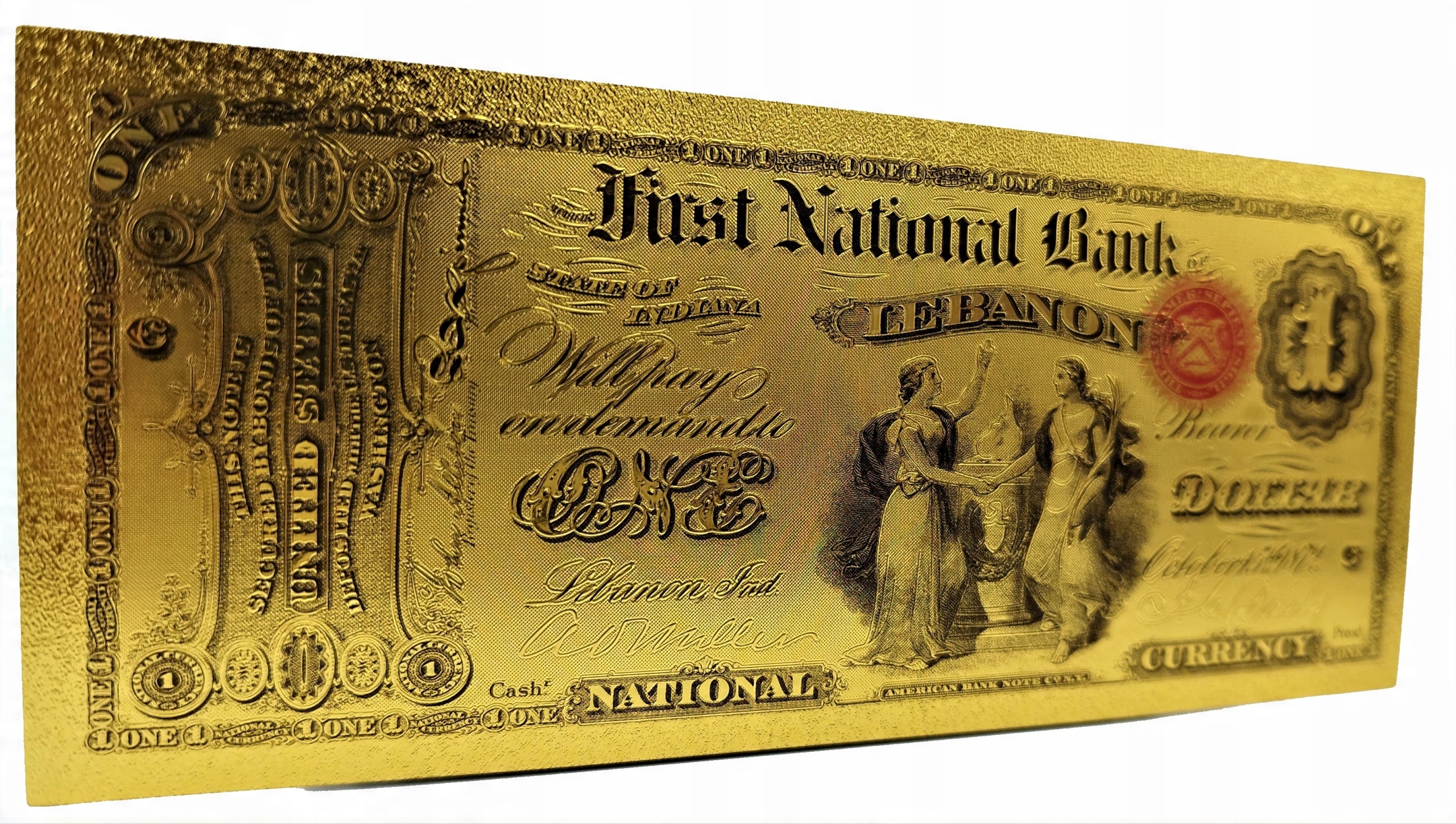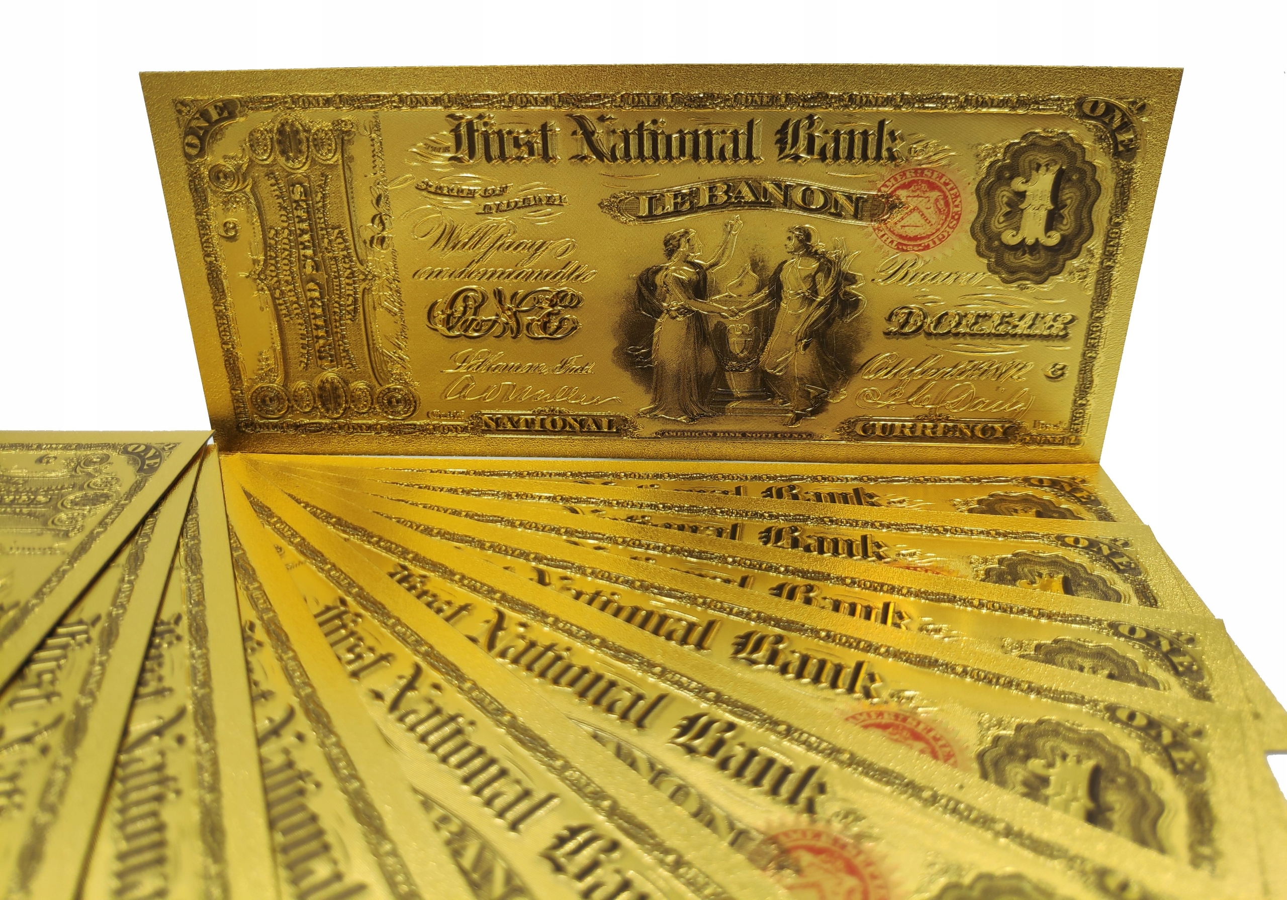 Точная копия американской банкноты первой серии 1875 года, изготовленная из ПВХ и покрытая с золотой фольгой