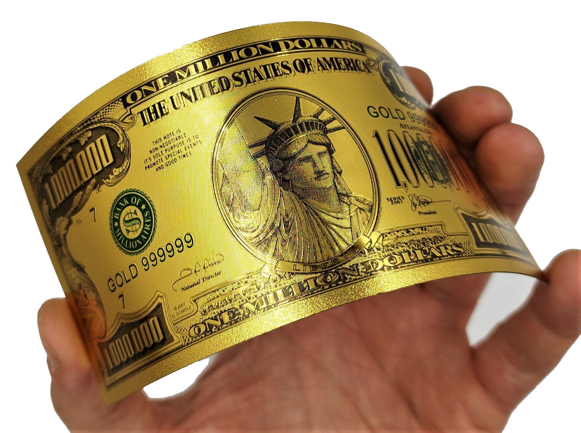 Красивая позолоченная коллекционная банкнота номиналом Один миллион долларов.