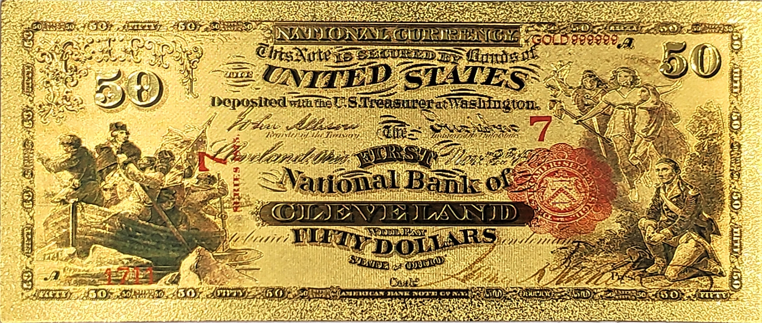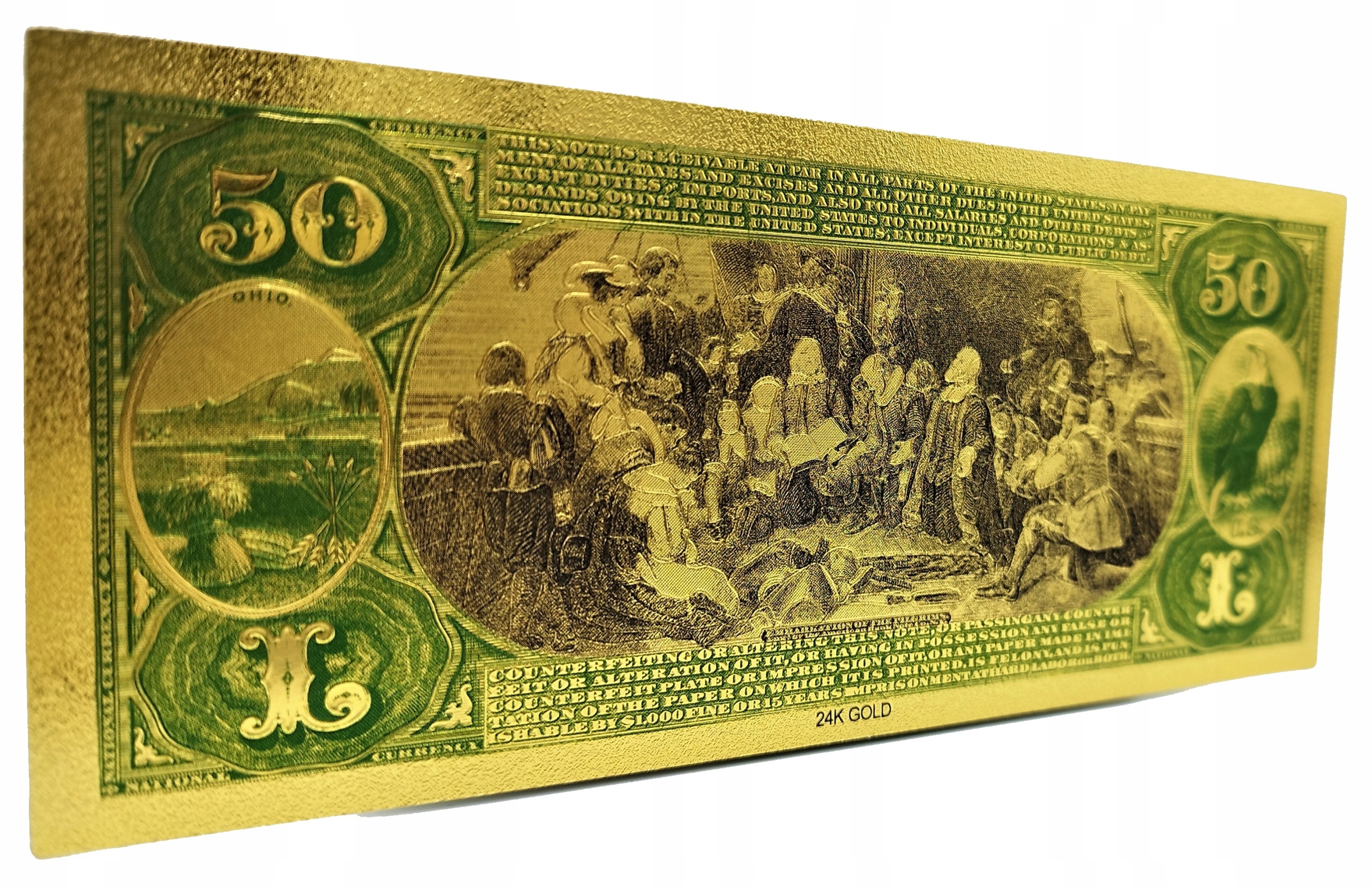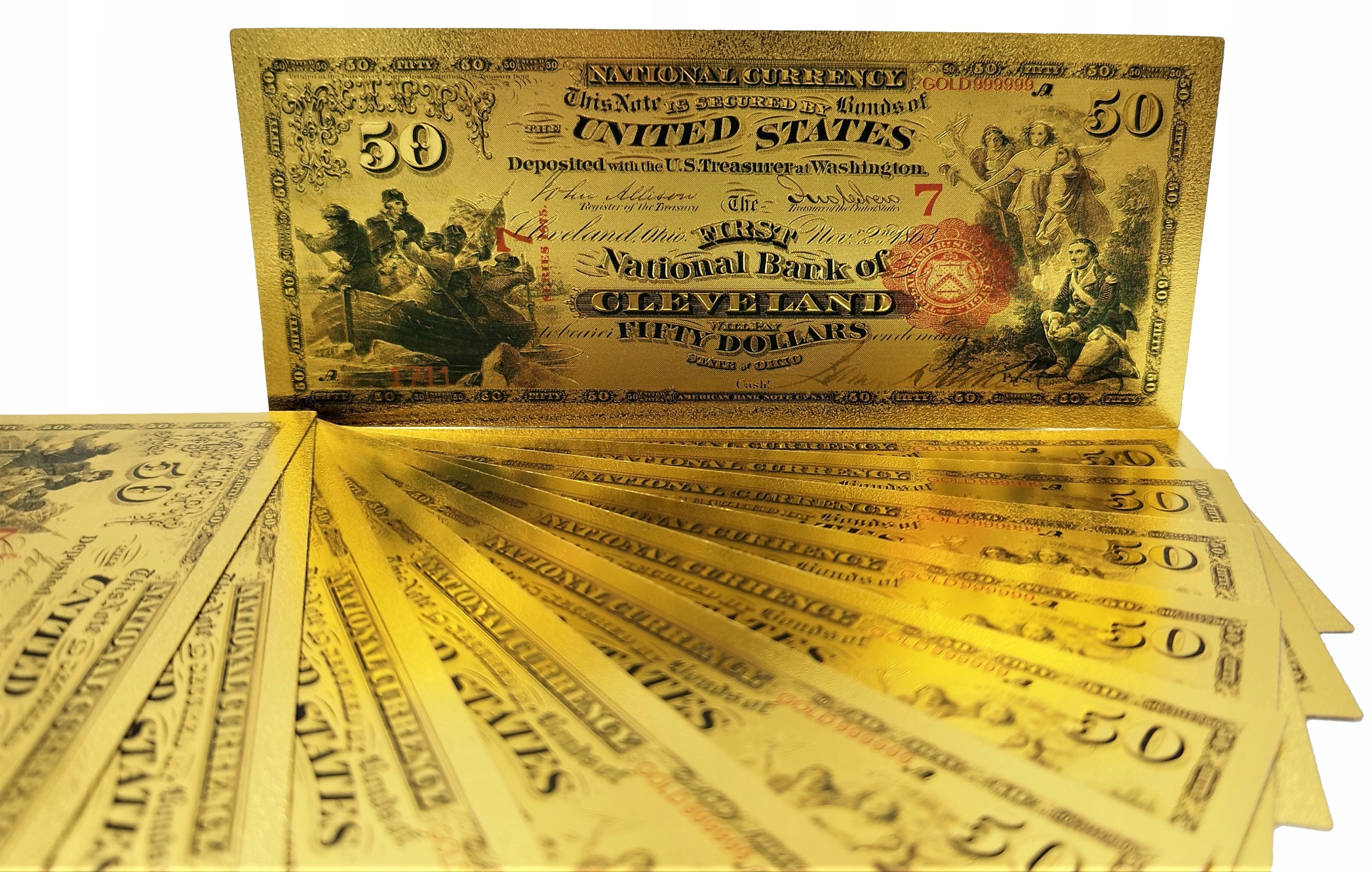 Позолочена колекціонерська банкнота номіналом 50 доларів 1875 р