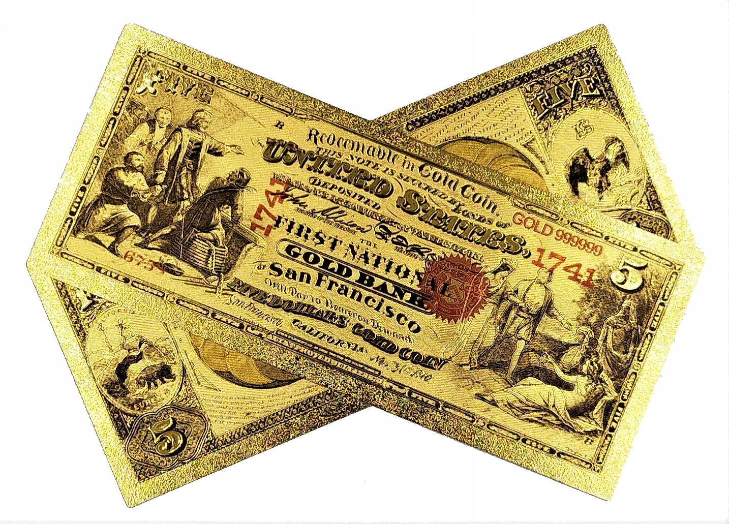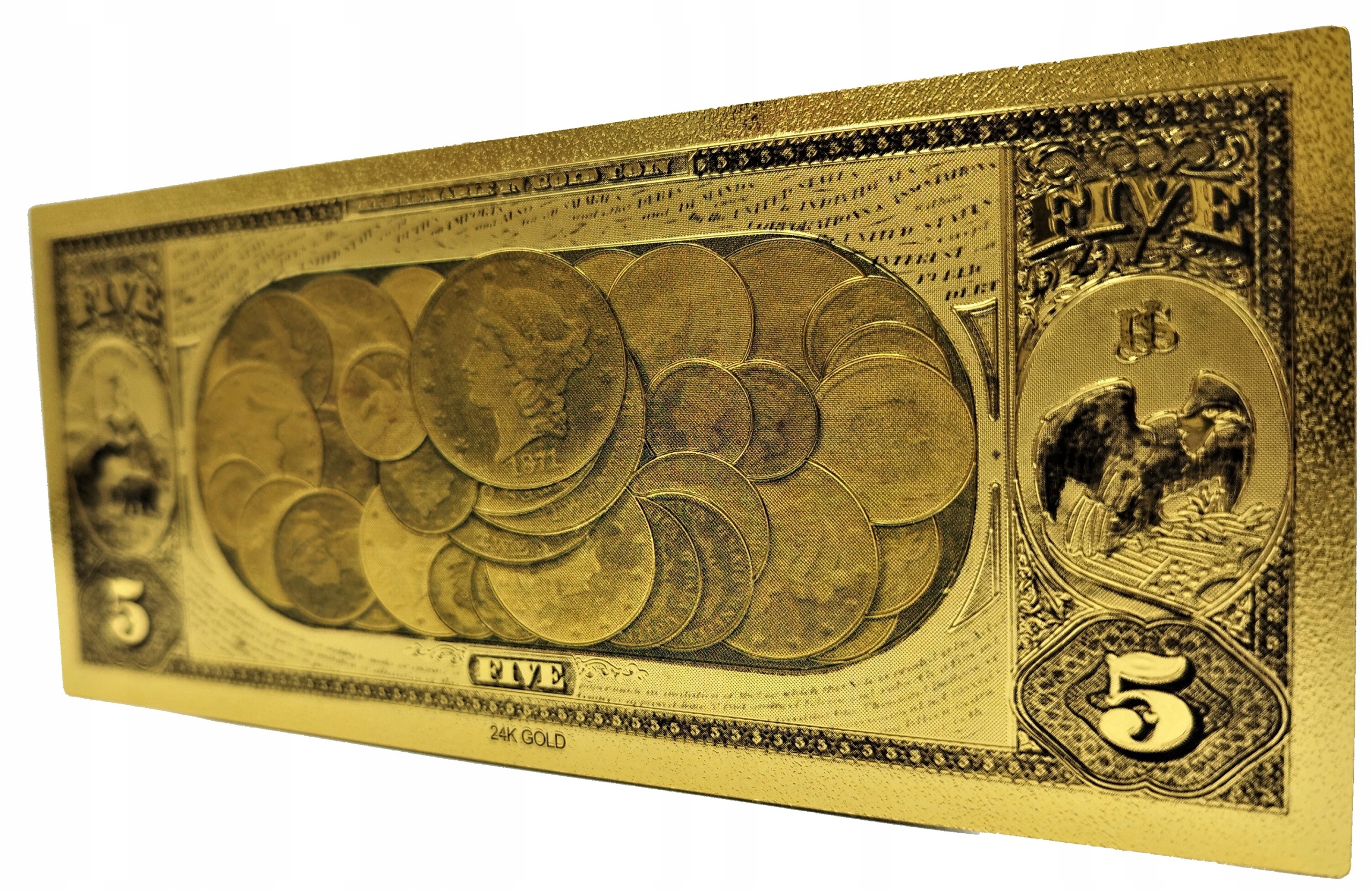 Позолочена колекціонна банкнота 5 доларів 1875 року