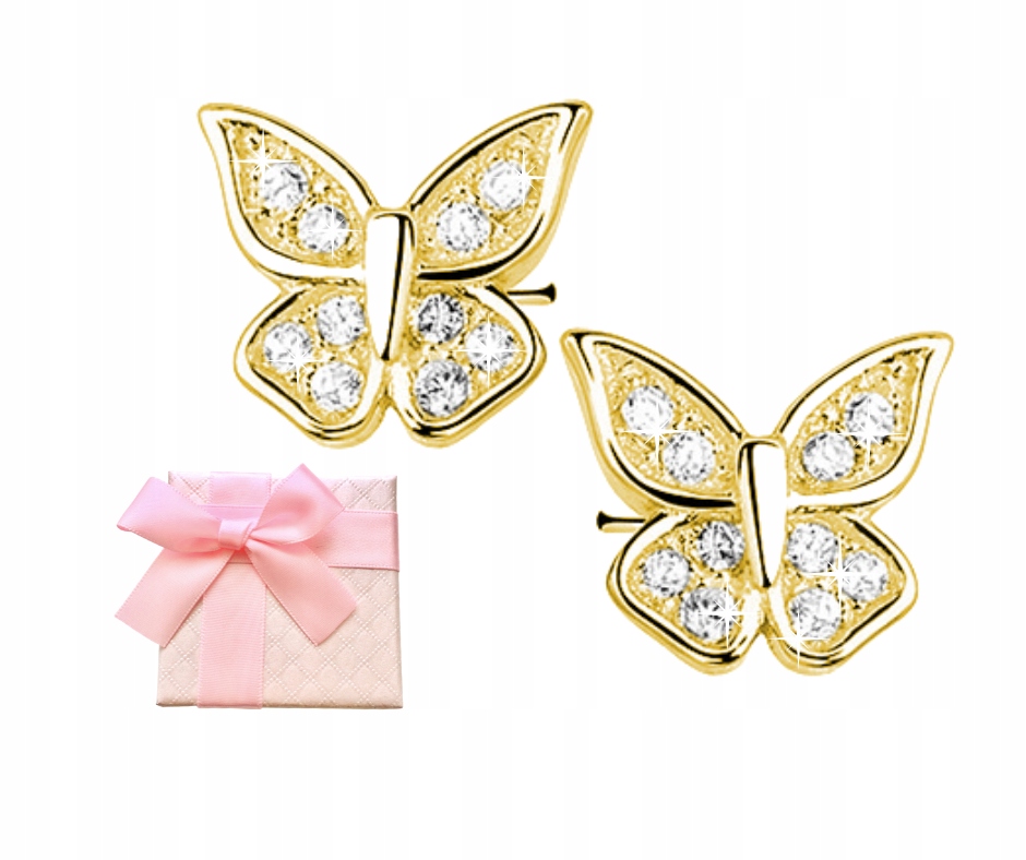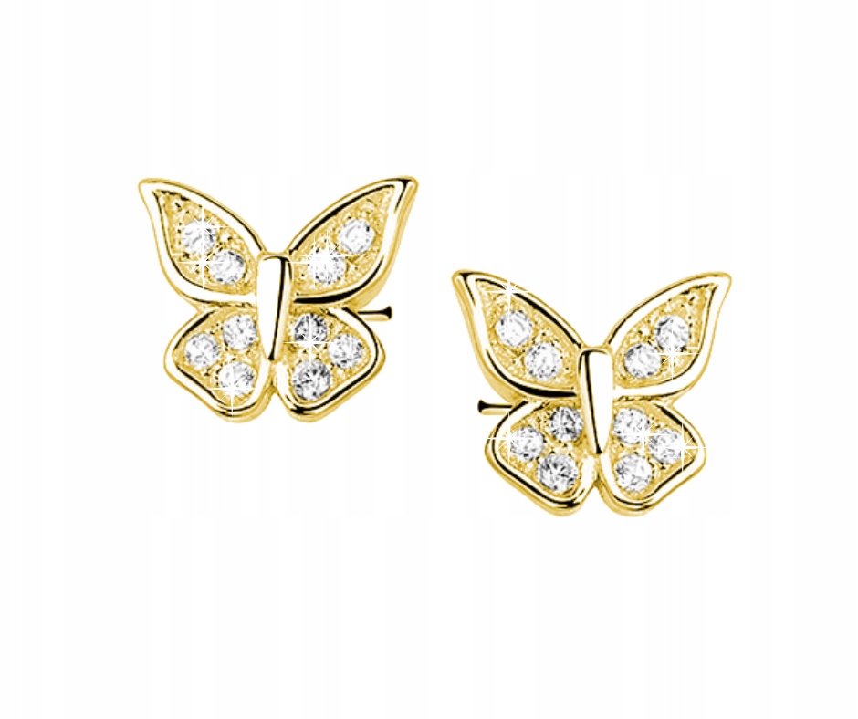 ✔️ Позолоченные серьги-бабочки для девушек и женщин, изготовлены из лучшего серебра 925. Серьги с покрытием из 14-каратного золота, украшены блестящими белыми цирконами.
